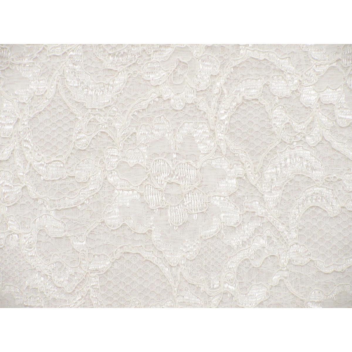 白い帯地の上に、花模様のレースを重ねた半幅帯です。