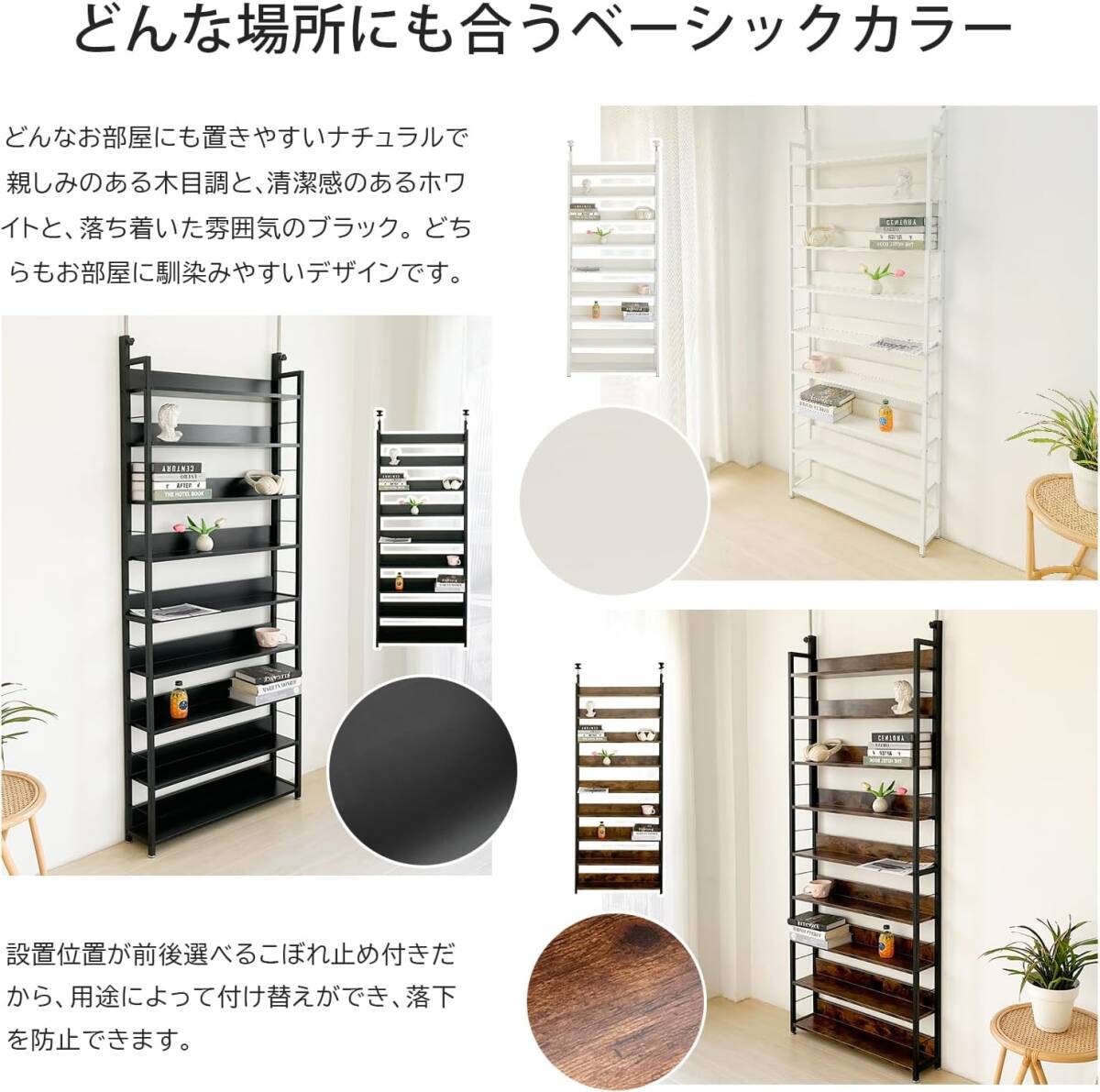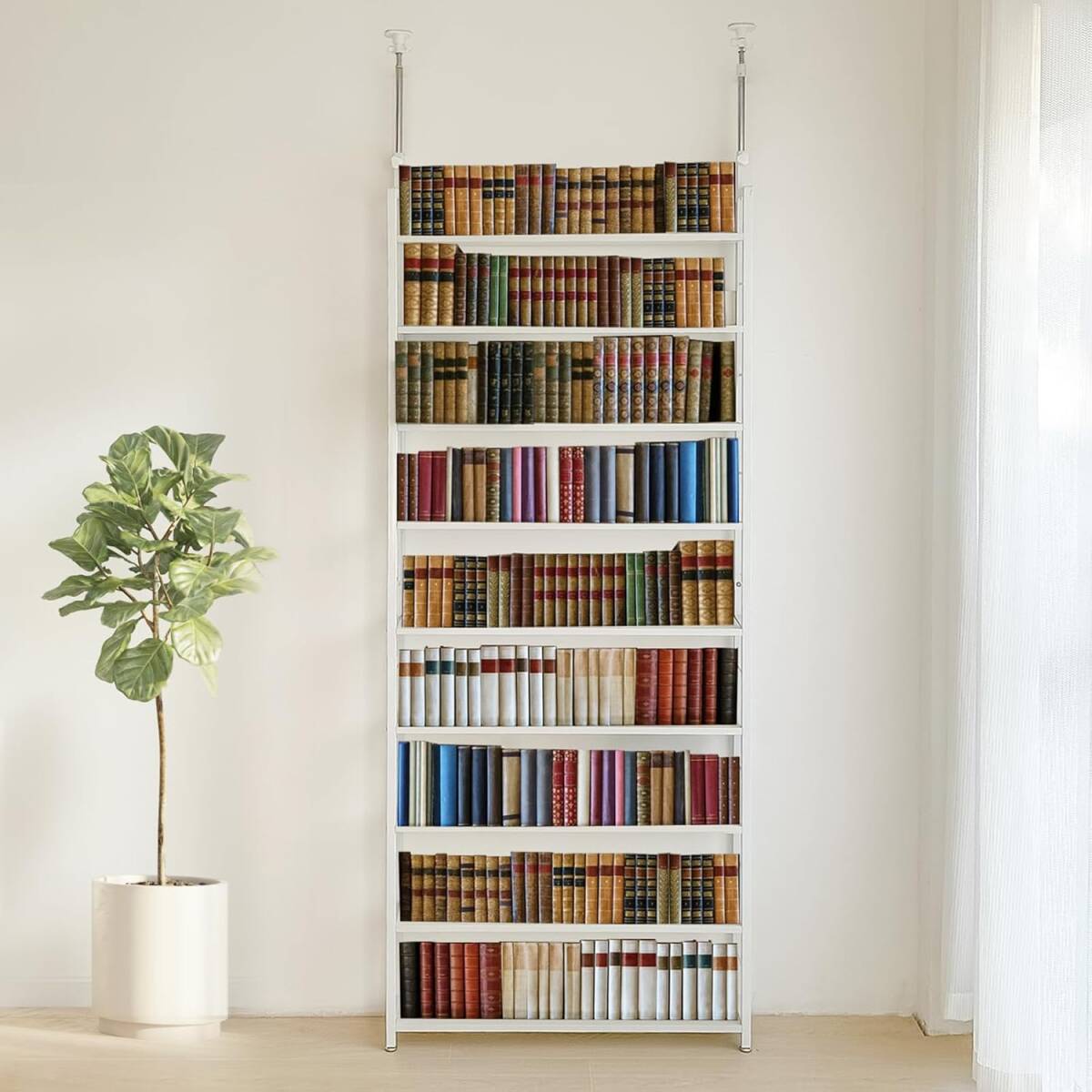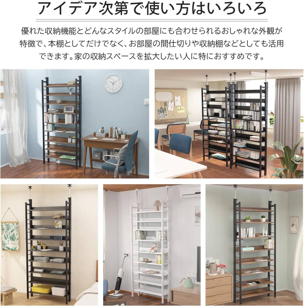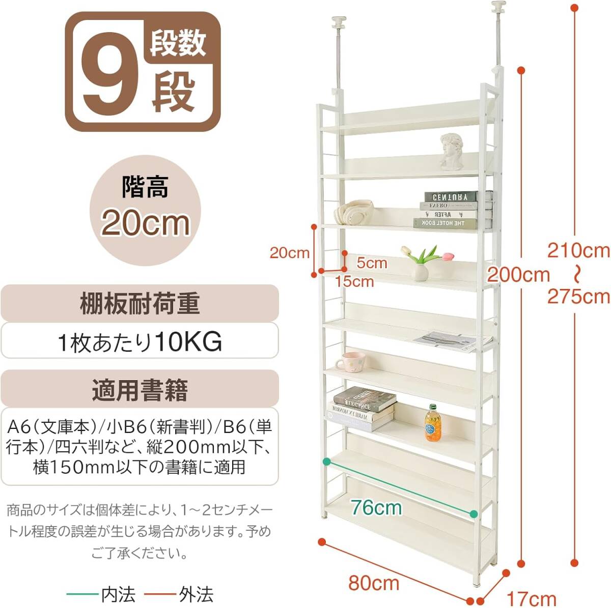 コスパの良い収納 本棚 突っ張りラック  9段 簡単設置 DIY 穴あけ 工事が不要 幅80*奥行17*高さ210.5-275cm