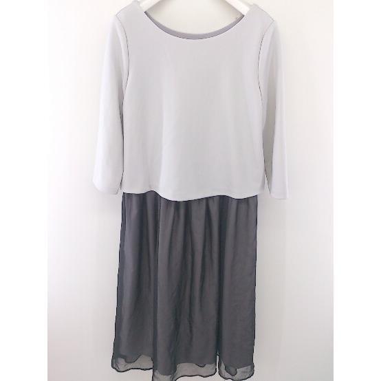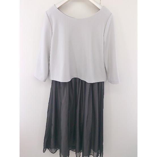 ◇ ANGELIEBE エンジェリーベ マタニティ 七分袖 膝下丈 ワンピース サイズS/M ブラック グレー レディース