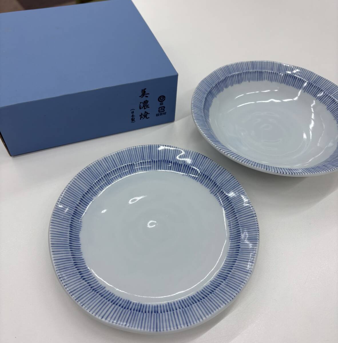 【★1円スタート★】美濃焼 陶器 お皿 2枚セット 青 色 食器 浅め 深め 使いやすい シンプル ヤマト運輸60サイズ発送 現状品 中古 A293