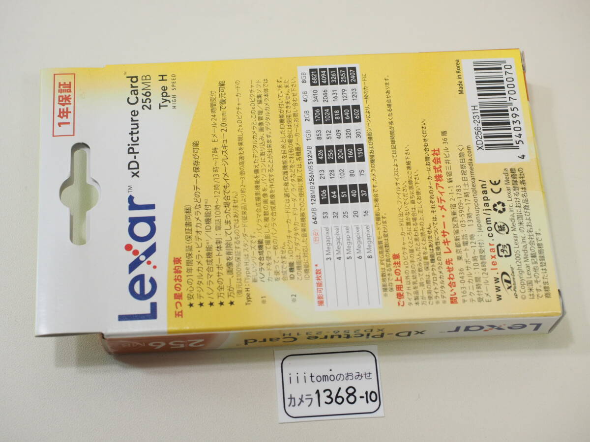 管理番号 カメラ 1368-10 タイプ xDピクチャーカード 256MB(TypeH) 未使用ですが、箱にセロテープ貼付があります ブランド名 Lexar レキサー(OLYMPUS オリンパス) 製造国 韓国製 サイズ ━ |