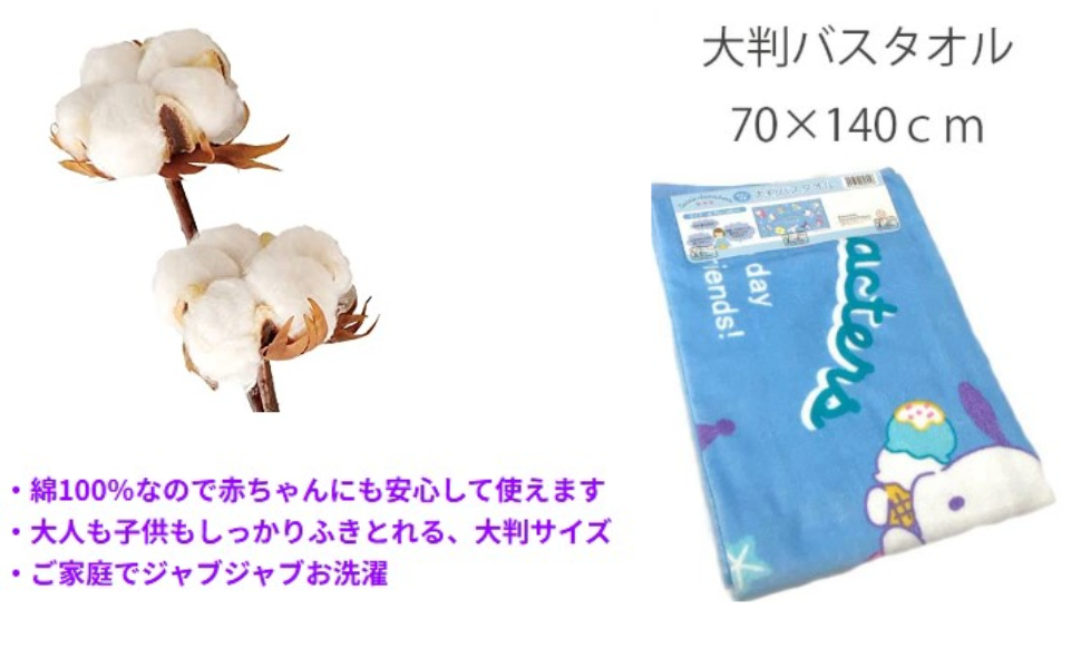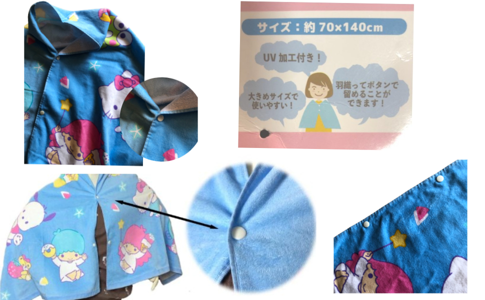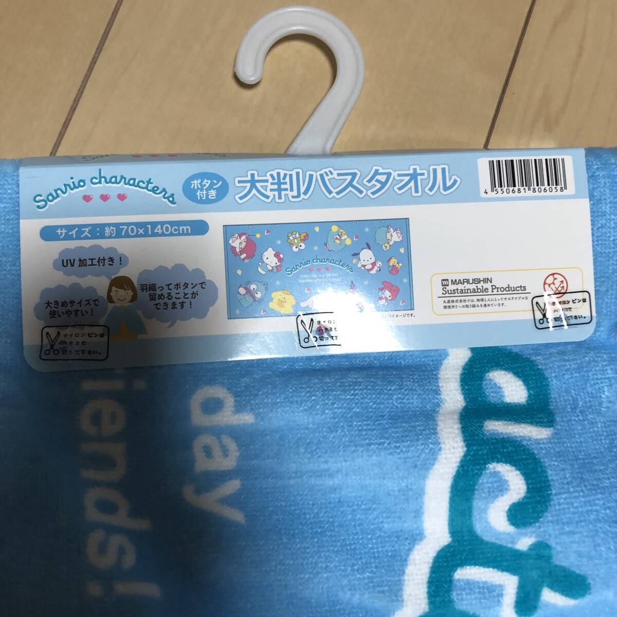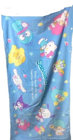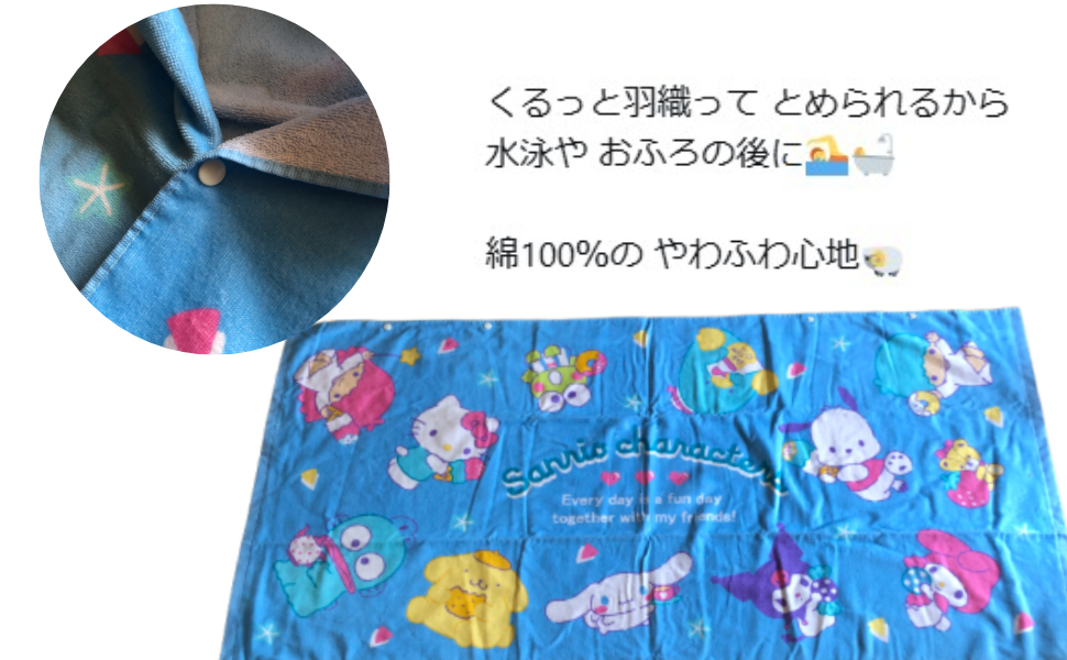 新品サンリオ キャラクター サンリオキャラクターズ「キラキラポップブルー」沢山 70x140㎝ボタン付き大判バスタオル