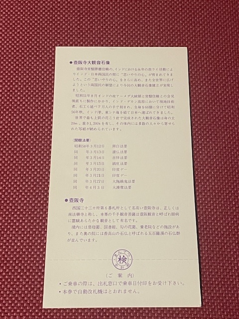 近鉄 天竺渡来大観音石像開眼記念乗車券 (管理番号10-40)