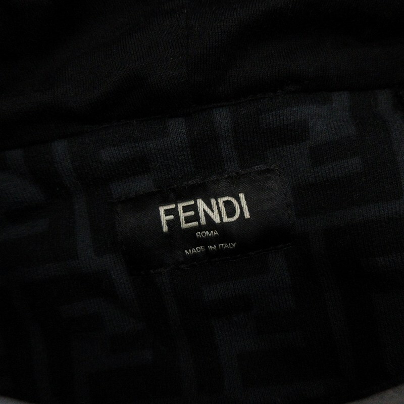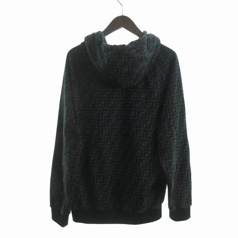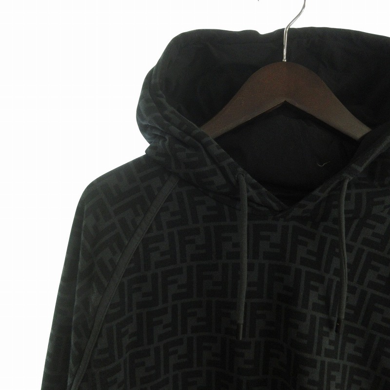 フェンディ FENDI FFロゴ ズッカ柄 パーカー スウェット プルオーバー 裏起毛 総柄 コットン FY0945 A6ZT 黒 ブラック XL メンズ