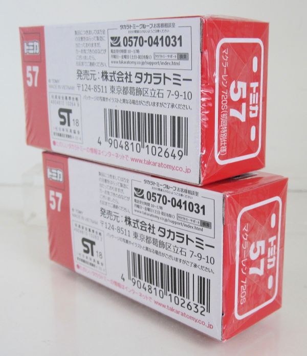 トミカ No.57 2018 マクレーン 720S(初回特別仕様)と通常品の2台セット(新車シール付き)