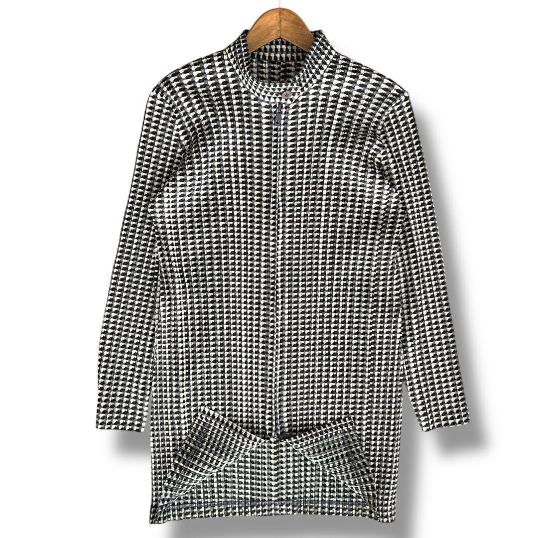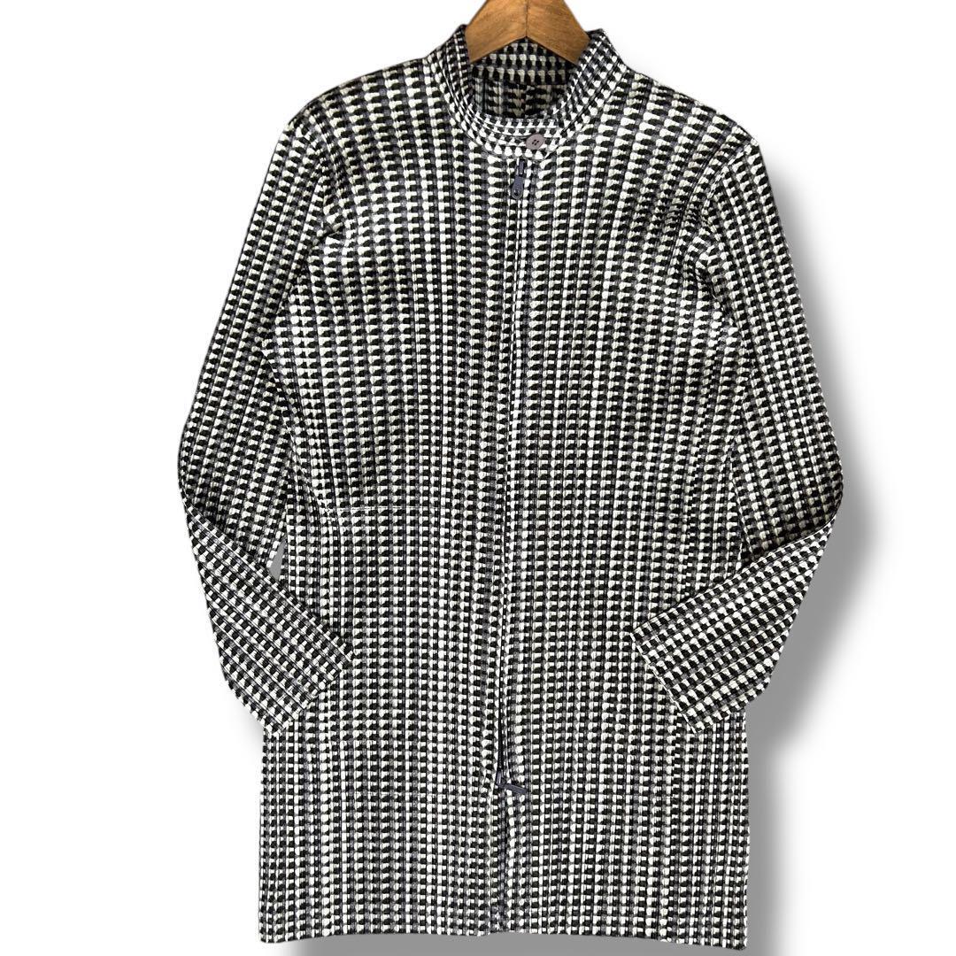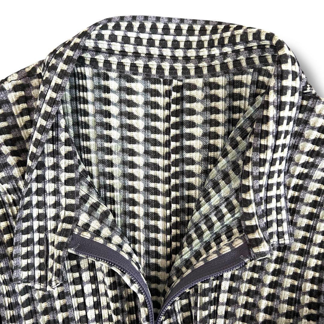 長袖 ジップアップ ブルゾン 羽織 プリーツ ストレッチ 格子柄 総柄 イッセイミヤケ