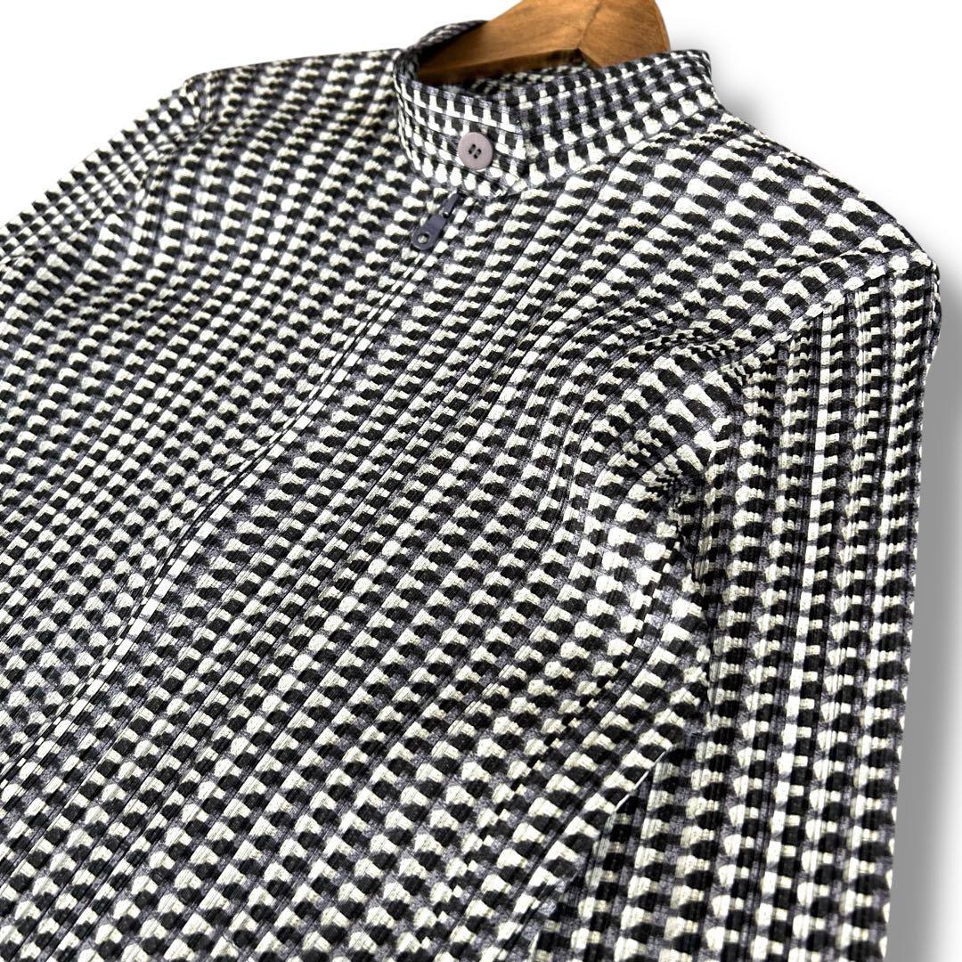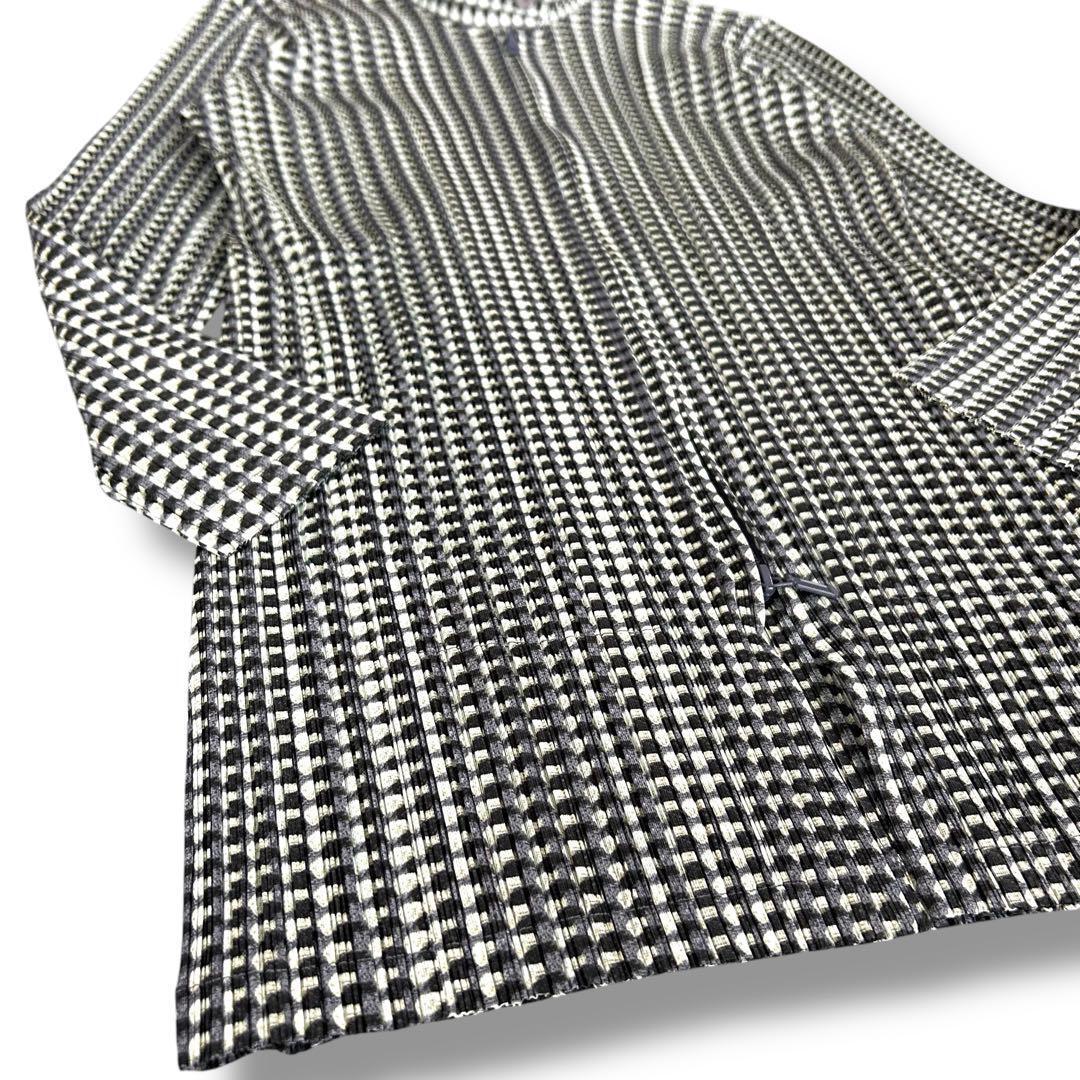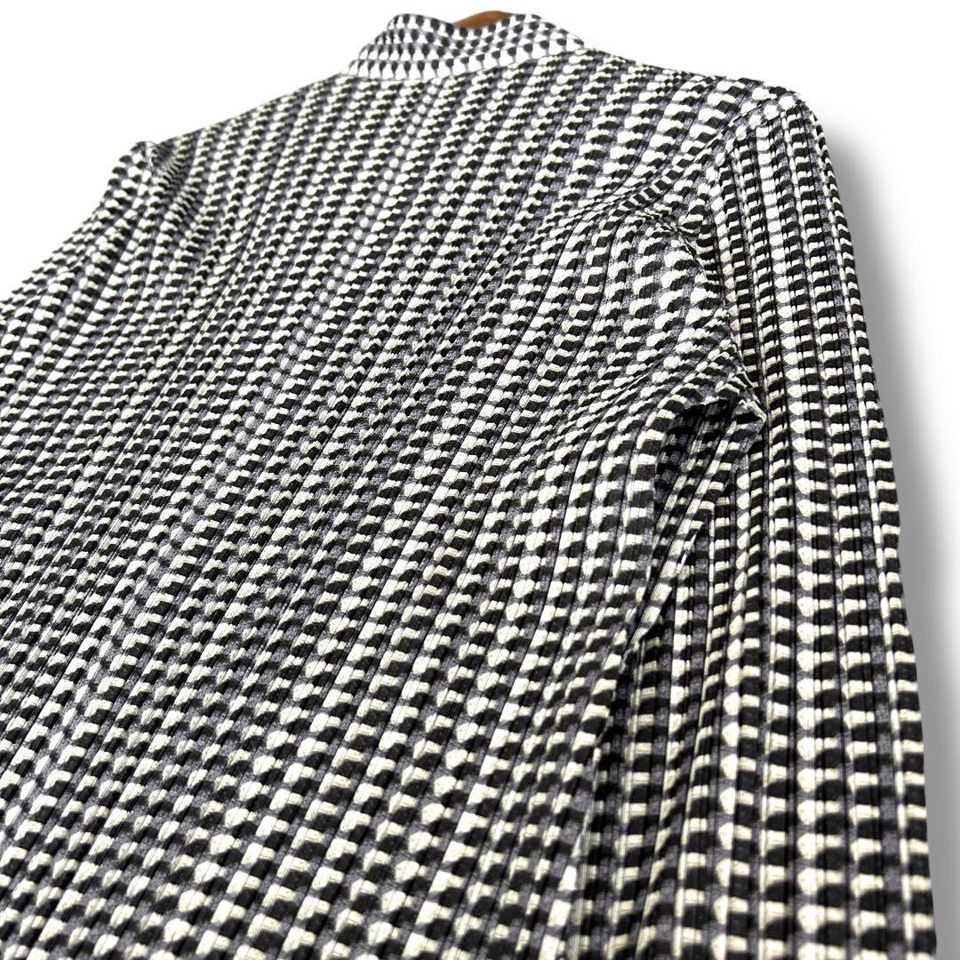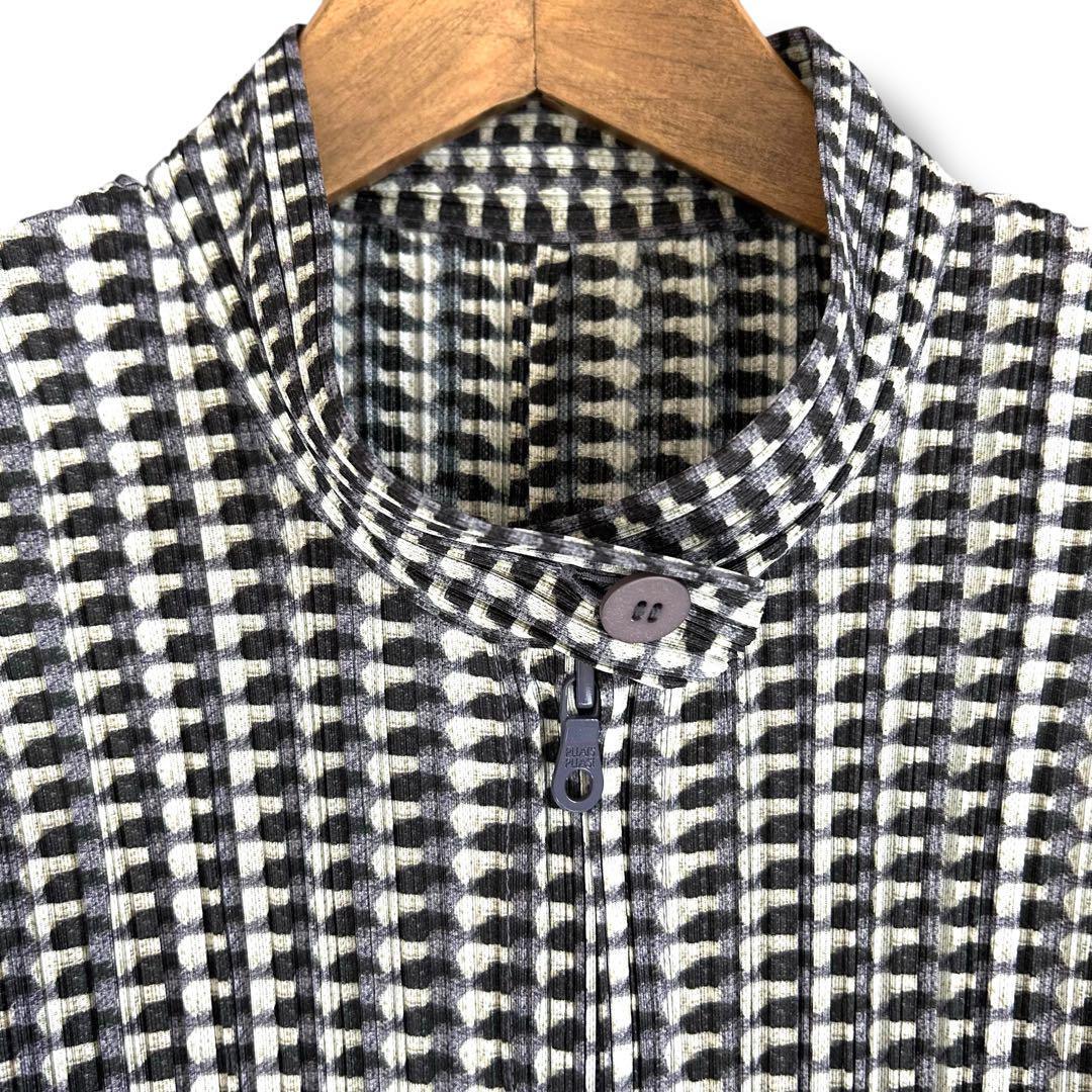 長袖 ジップアップ ブルゾン 羽織 プリーツ ストレッチ 格子柄 総柄 イッセイミヤケ