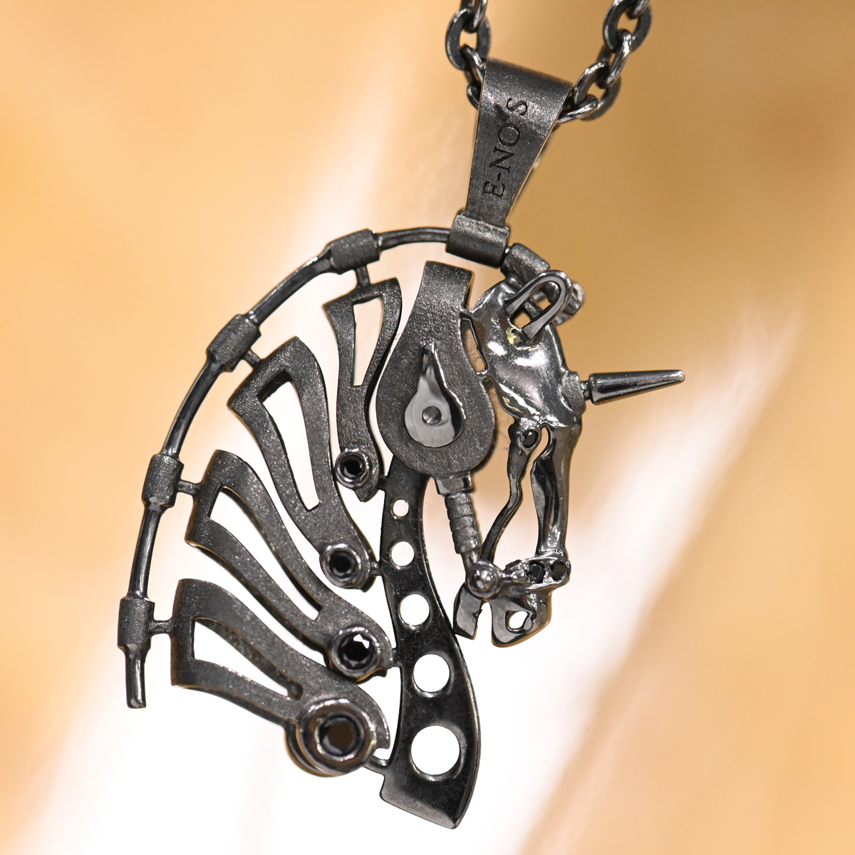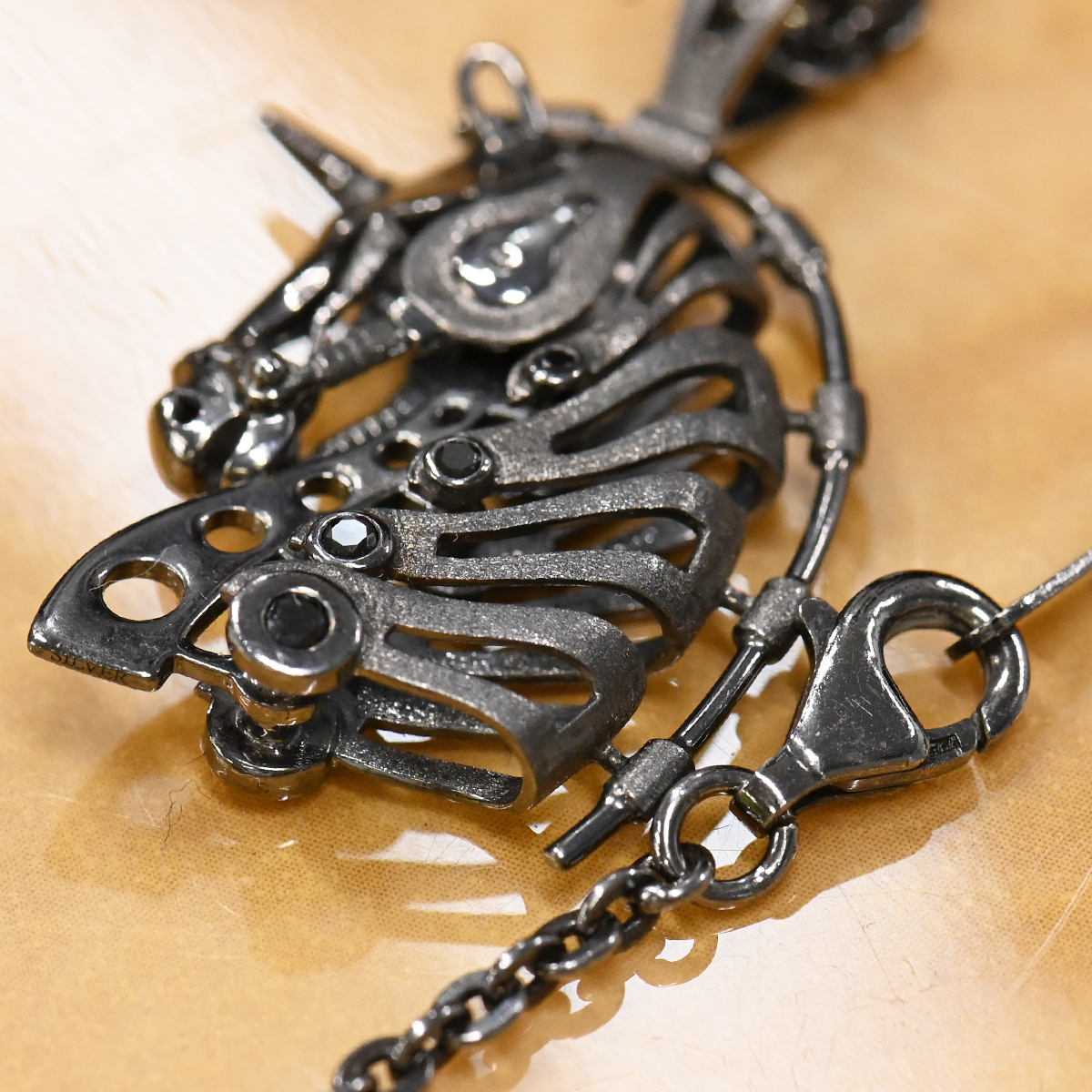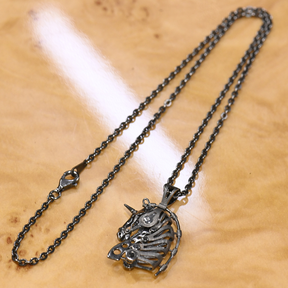 | モデル | ブラック加工 メカニカル ユニコーン ペンダント ネックレス |