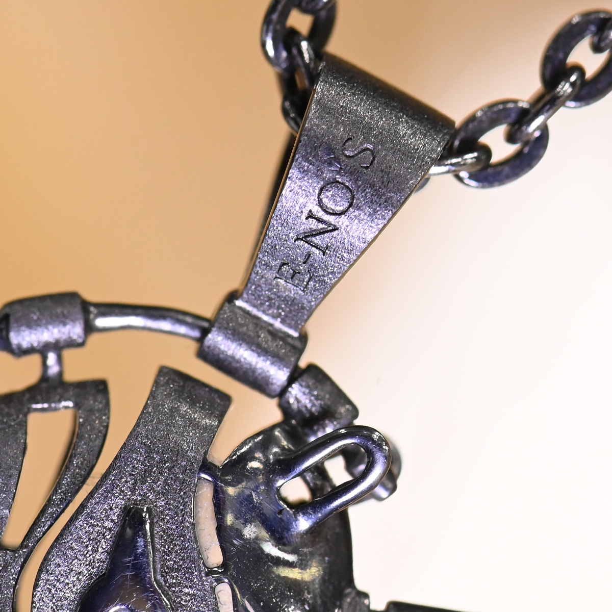 イーノスのブラック加工 メカニカル ユニコーン ペンダント ネックレスです。 唯一無二のデザイン性を誇る完全会員制ジュエラー。 メカニカルな造形のユニコーンの頭部は稼働するギミックが加えられています。 市場流通量の圧倒的に少ないメゾンのお品なのでお探しの方も非常に多いかと思います。 |