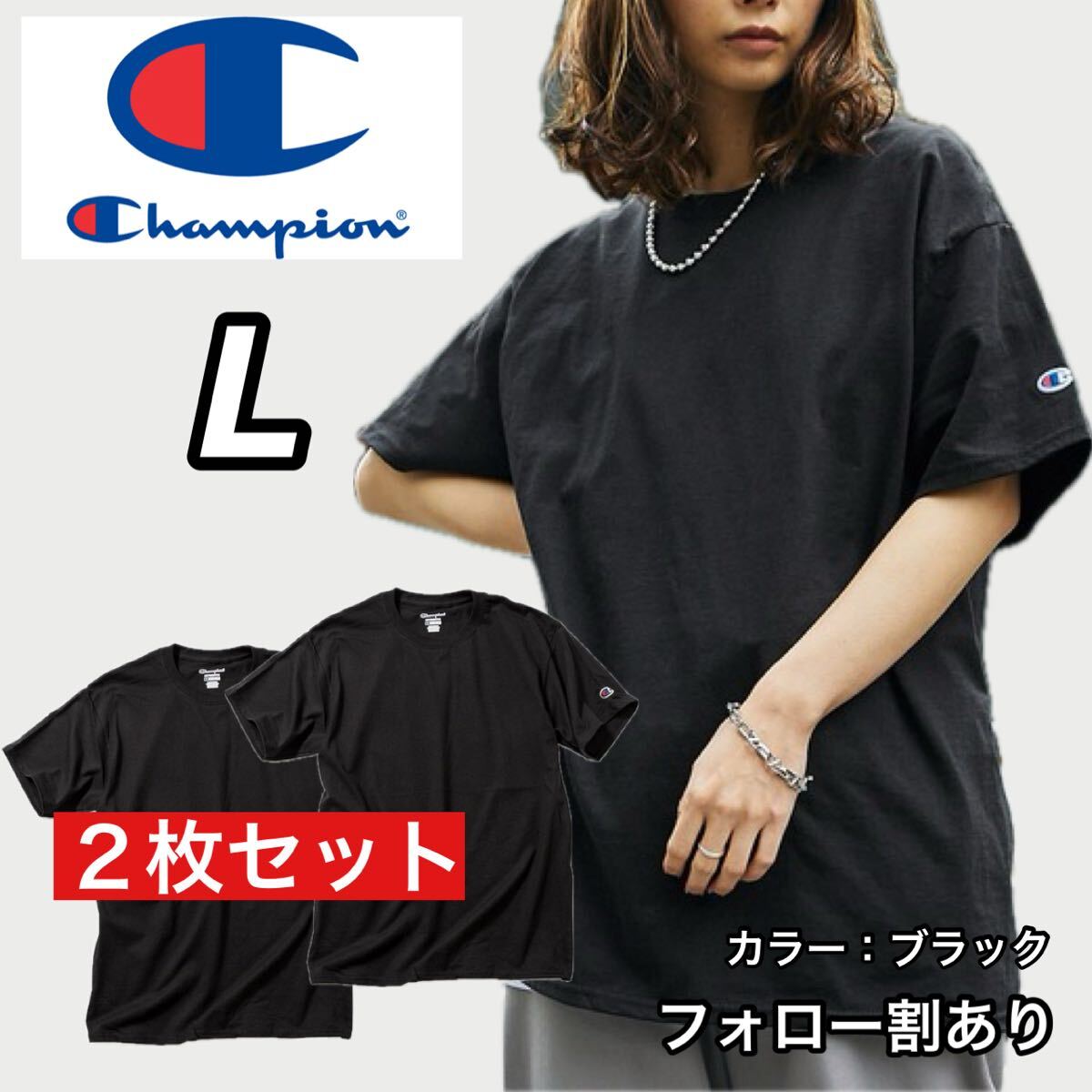 新品未使用 Champion チャンピオン 無地 半袖Tシャツ 黒 ブラック2枚セット Lサイズ メンズレディース ストリートウェア
