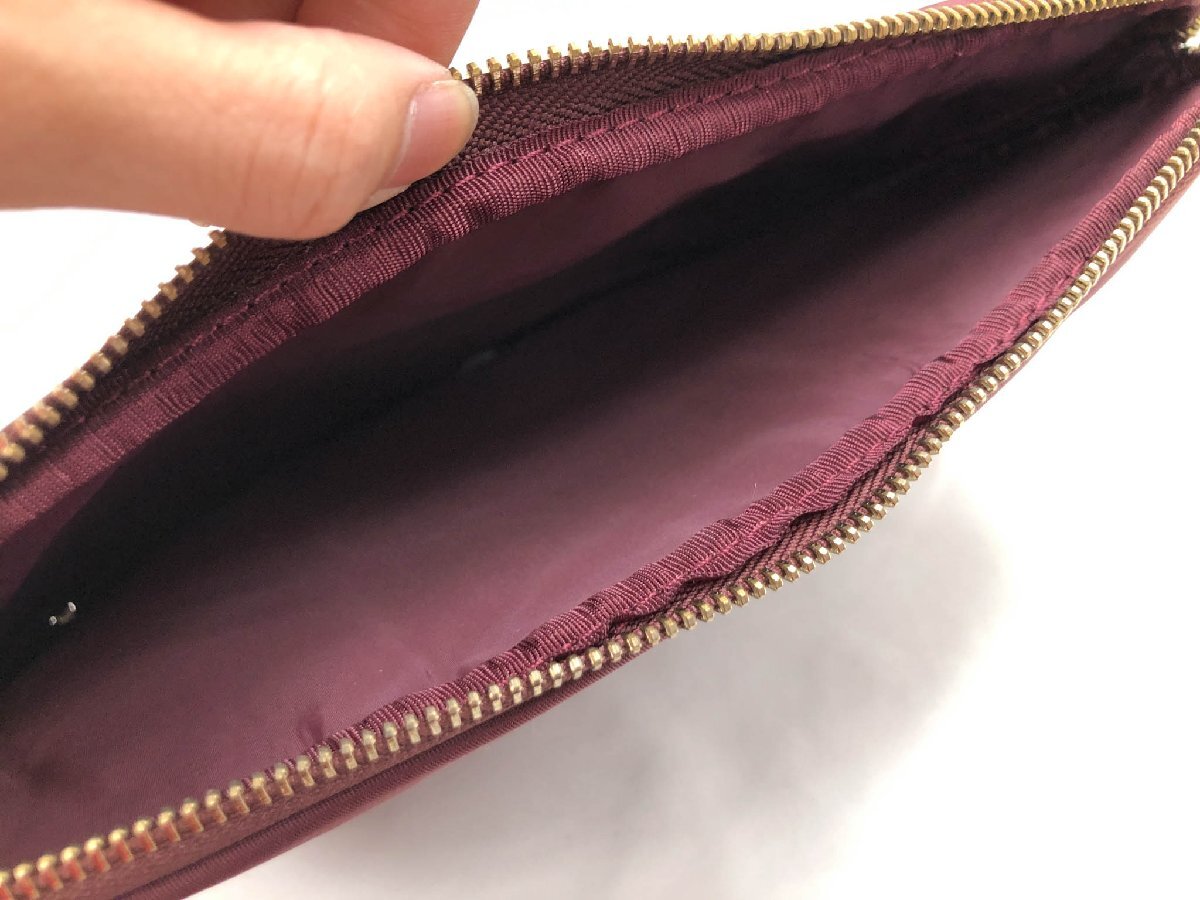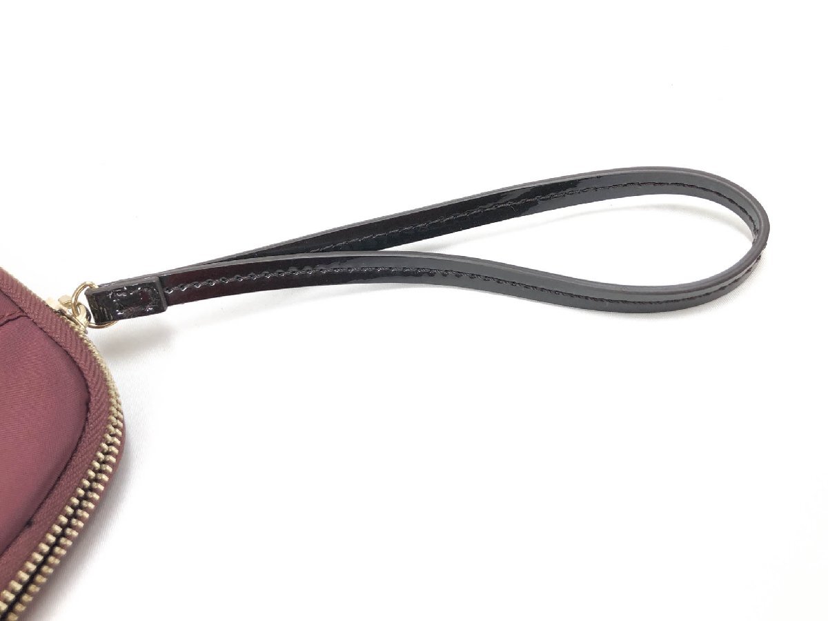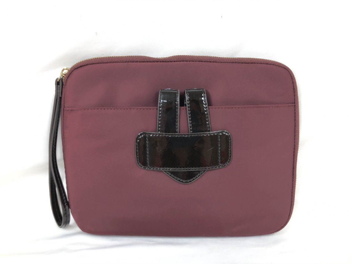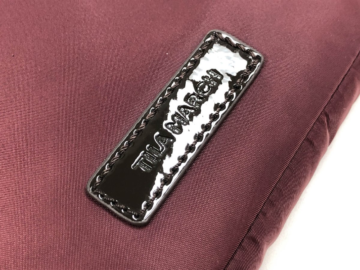 未使用 【ティラマーチ TILA MARCH】 エナメル×ナイロン L字ファスナークッションポーチ クラッチバッグ (レディース)ボルドー○5LG3095○