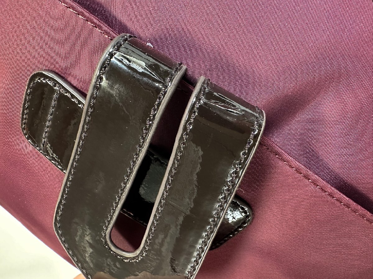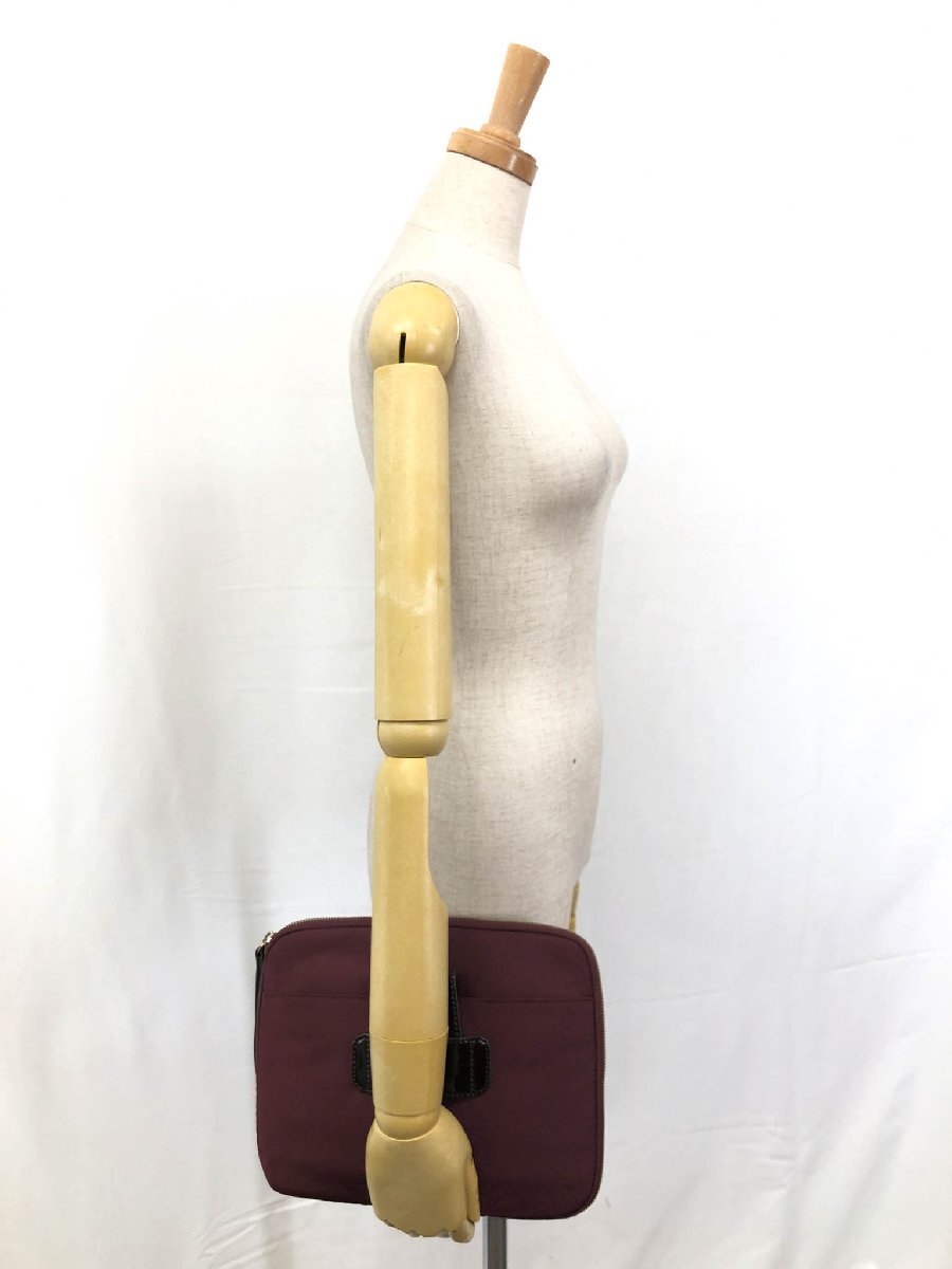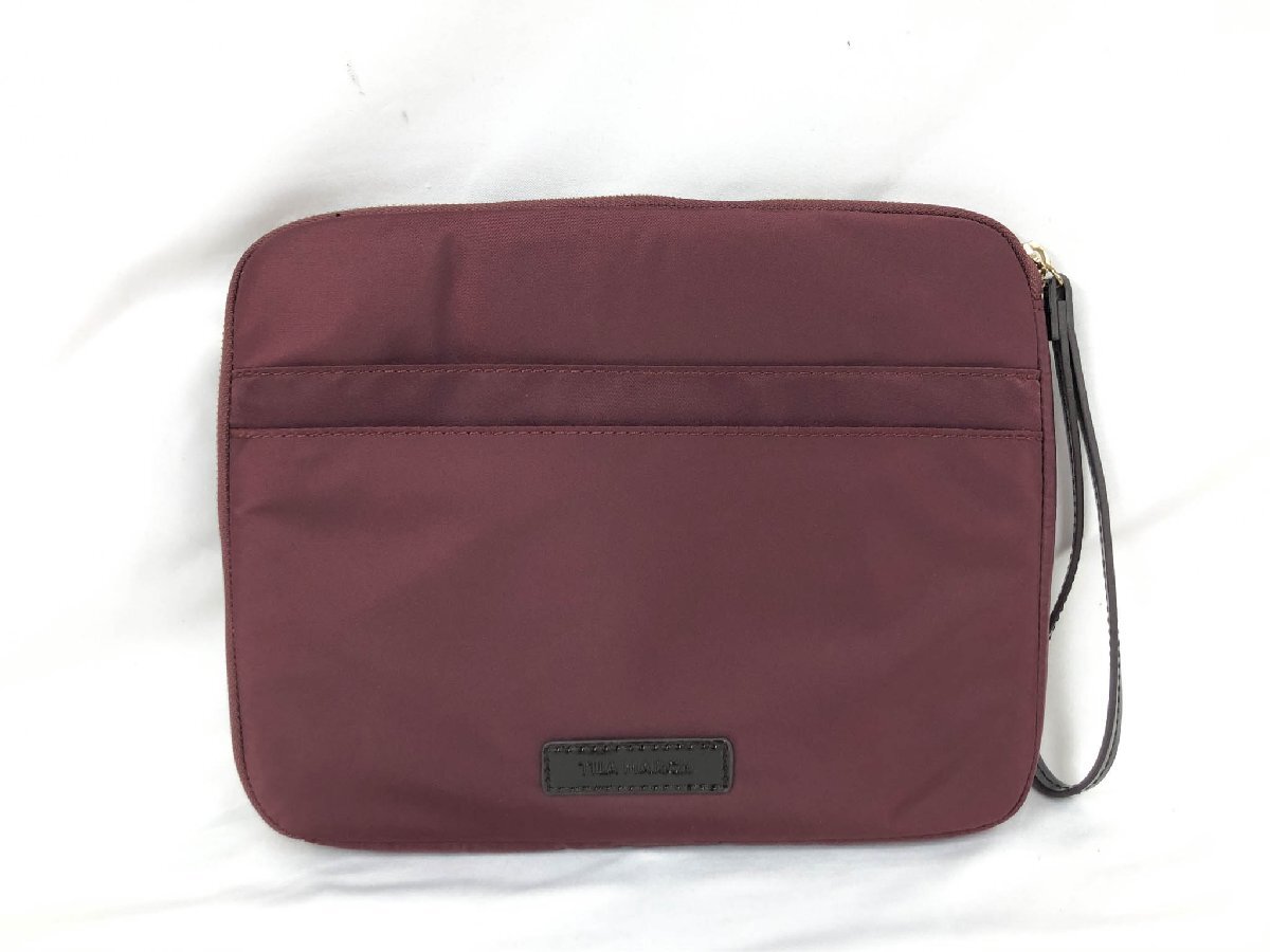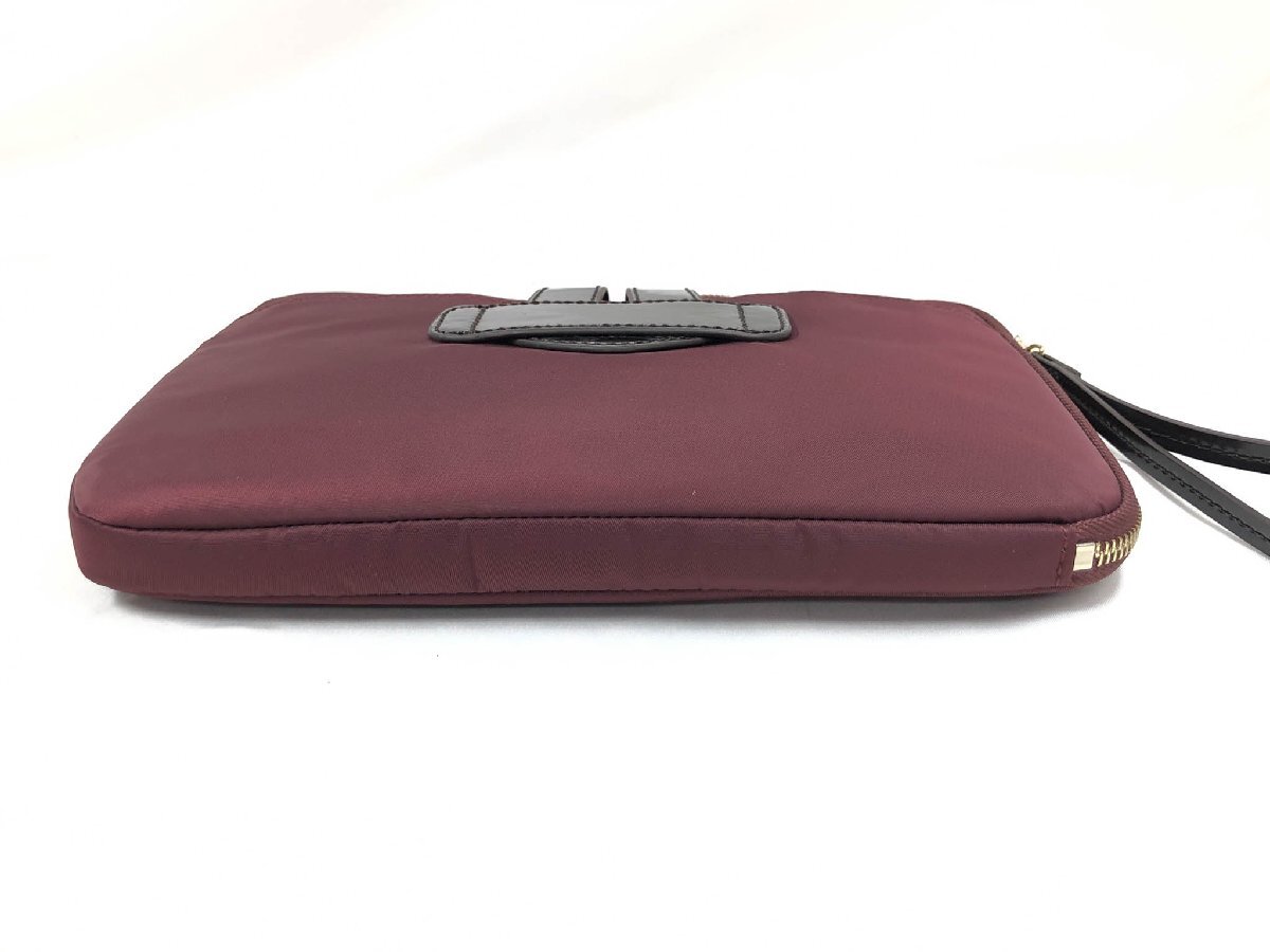 未使用 【ティラマーチ TILA MARCH】 エナメル×ナイロン L字ファスナークッションポーチ クラッチバッグ (レディース)ボルドー○5LG3095○