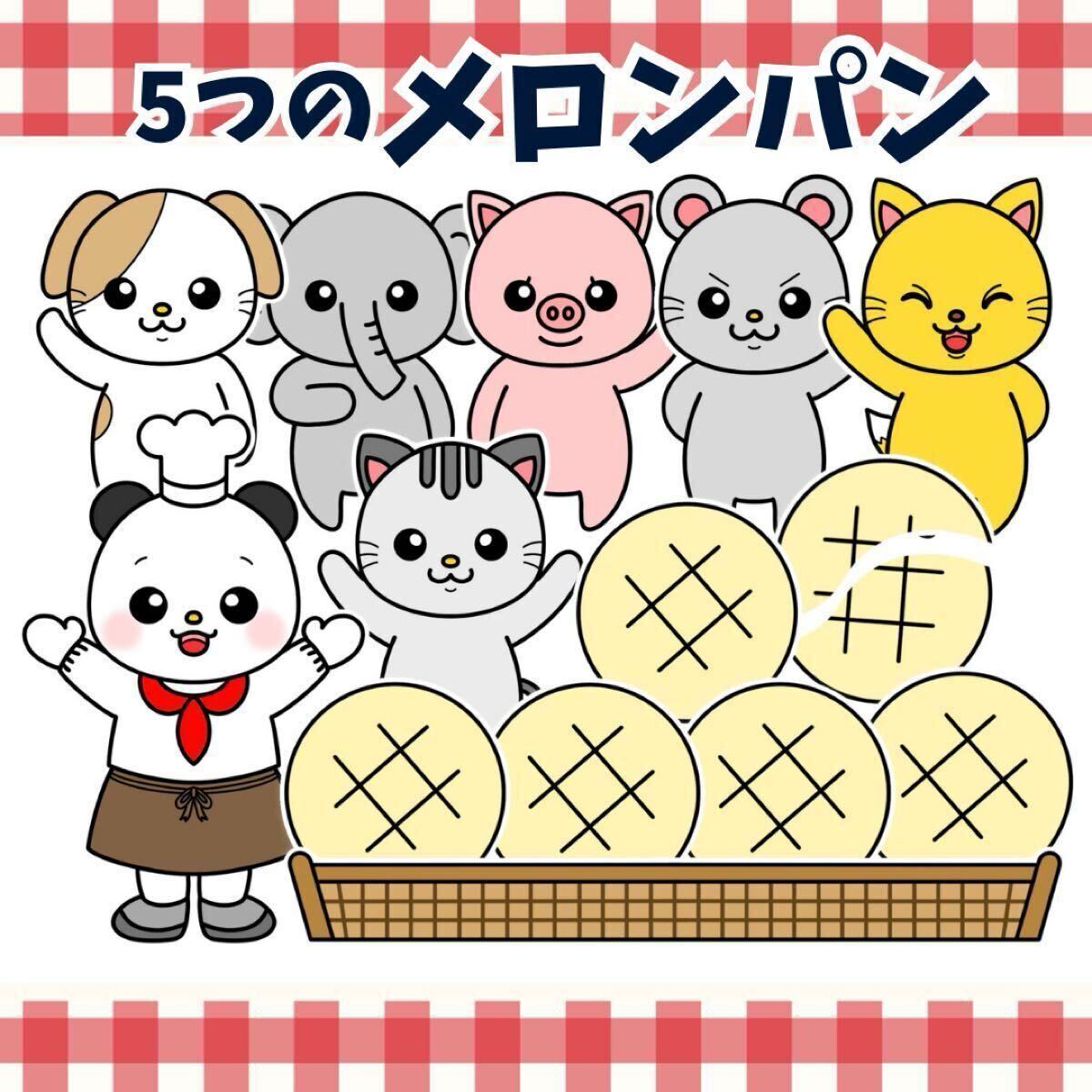 #保育教材 #パネルシアター #ペープサート #スケッチブックシアター #マグネットシアター #部分実習 #手袋シアター #製作 #壁面 #5つのメロンパン #パン屋さん