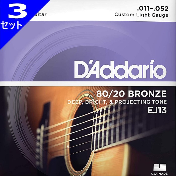 3セット D'Addario EJ13 Custom Light 011-052 80/20 Bronze ダダリオ アコギ弦