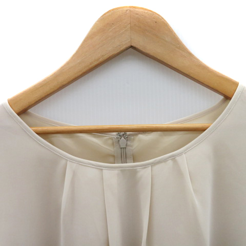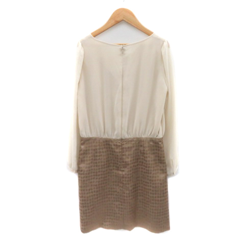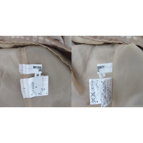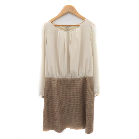 ナチュラルビューティーベーシック NATURAL BEAUTY BASIC ワンピース ミニ丈 長袖 切替 シフォン ドット柄 M ベージュ レディース