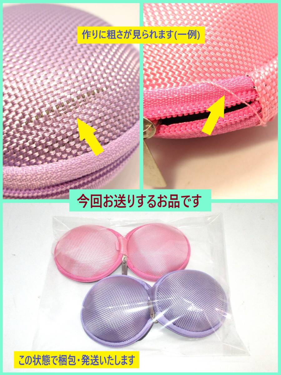 | 未使用品、丸型・マカロン型のミニケース 2色各1個・計2個セット商品です。 専用のパッケージ等の外装は、ありません。 画像1(TOP画)~画像7は 過去に出品時の画像を流用しています。 画像8~10は 今回お送りするお品を撮影しています。 あらかじめご了承ください。 以下の商品説明をよくご覧になってから、 ご検討をお願い致します。 神経質な方、完品をご希望の方は、 御入札をご遠慮ください。 【商品内容】 ・カラー:ピンク・パープル ・サイズ: 約 7.5~8cm径、厚さ 約 4.5cm *個々のお品で多少の差異があります ・重量: 20g程度 ・その他: 海外製/製造メーカーなどの詳細は 不明 中身を守る ややハードタイプ 内部にネットポケットのみのシンプルデザイン 小銭・小さめの鍵・アクセサリー・薬などの 小物を入れるのに良い サイズ感です ファスナーを開けた状態で発送します (参考:発送状態/画像10) *状態は画像にてご確認ください *実際の商品の色味とは異なる場合があります *サイズ対比用として 一般的なリップクリーム ペットボトルキャップ と一緒に 撮影した画像を上げています 参考にどうぞ(画像6) (このケースに画像のリップは収納不可) 【状態等】 ・未使用品です。 ・撮影・確認の為、ファスナーを開けています。 ・海外製につき、製造上のキズ・汚れ、 作りの粗さがある場合があります。 (参考:画像7、他) ・商品の歪み等により、ファスナーの開け閉めが しにくい場合があります。 (全体の形を整えてから開閉をお願いします) また、ファスナー部は強く引っ張り過ぎると、 持ち手が外れることがあります。 ご了承ください。 ・長期保存品につき、多少の汚れ・埃の付着等、 御容赦下さい。 【補足】 商品により、 サイズ・重量・ネットポケットの深さ・ ファスナー部の持ち手や開く方向などに 多少の差異がある場合があります。 また、細部が画像の物とは異なるものが お手元に届く場合があります。 ご了承ください。 以上の点をご承知いただける方のみ ノークレーム・ノーリターンにて ご検討ください。 | ||