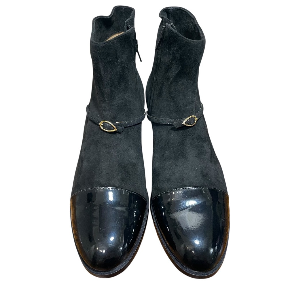 商品名:Jennifer Chamandi ジェニファーチャマンディ スエード パテントトゥキャップ ショートブーツ 39 26cm相当 ブラック