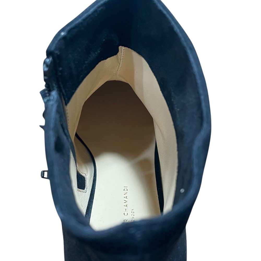 未使用 Jennifer Chamandi ジェニファーチャマンディ スエード パテントトゥキャップ ショートブーツ 39 26cm相当 ブラック