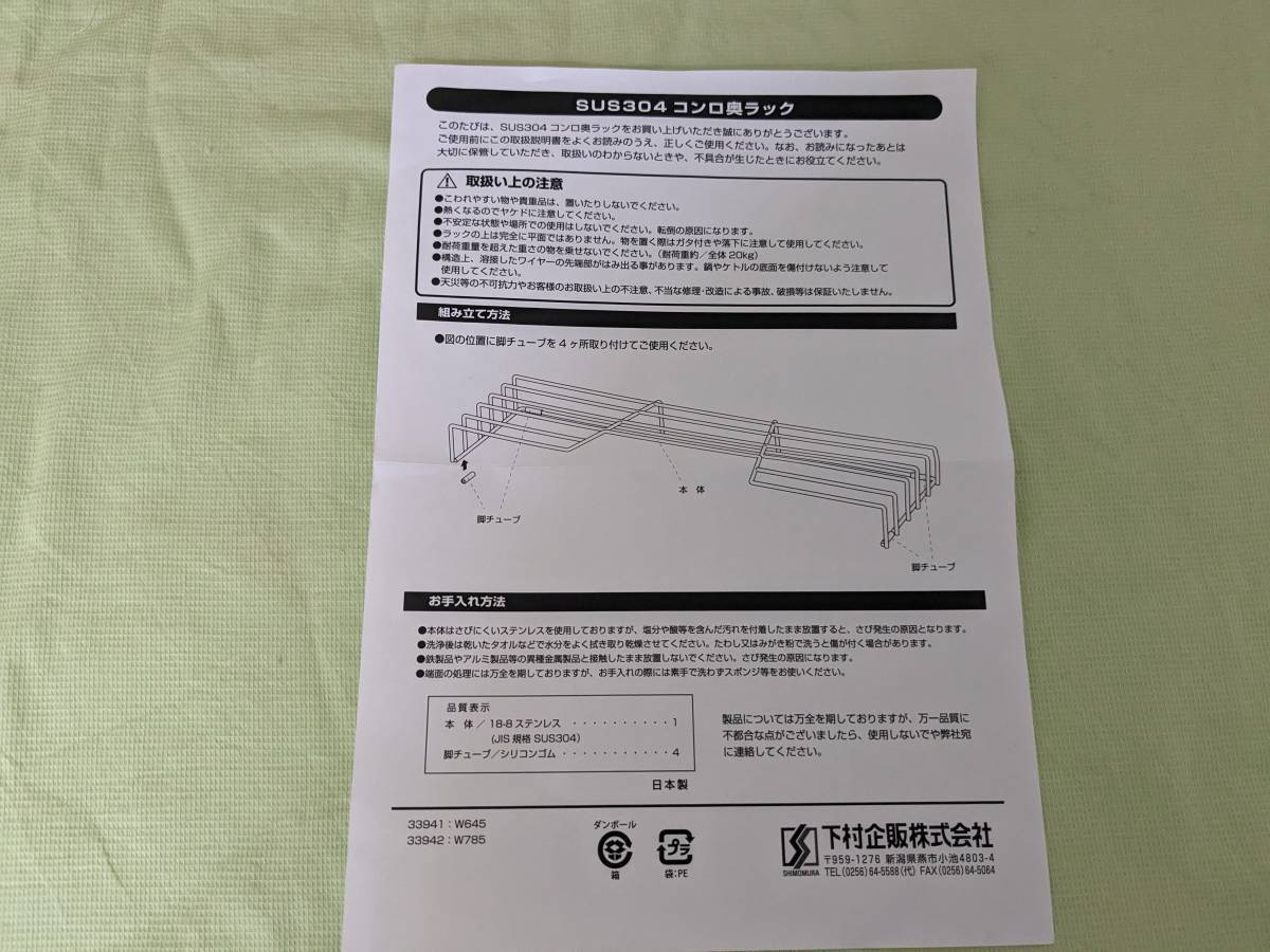 【送料無料】【未使用品】下村企販(株) SUS304 コンロ奥ラックW785 18-8ステンレス 頑丈なコンロラック 幅78cm 33942 日本製
