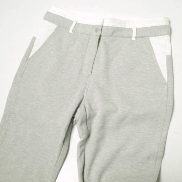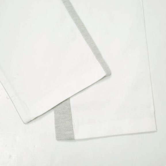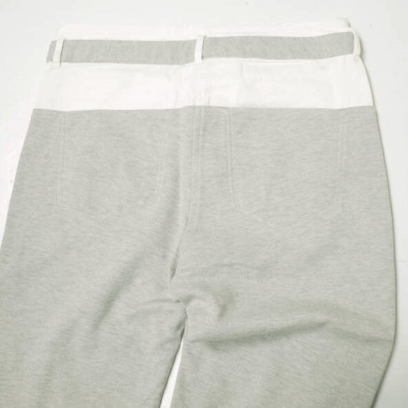 本作はハニカム生地(グレー)とオックス生地(ホワイト)を組み合わせたコンビネーションパンツ。