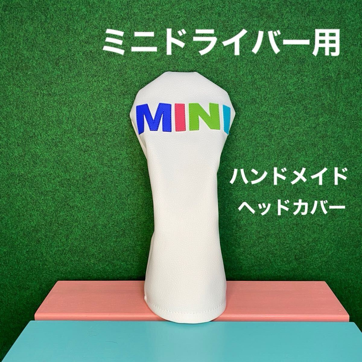 全国送料無料!ハンドメイド【ミニドライバー用ヘッドカバー】マットホワイト フェイクレザー 合皮 ヘッドカバー