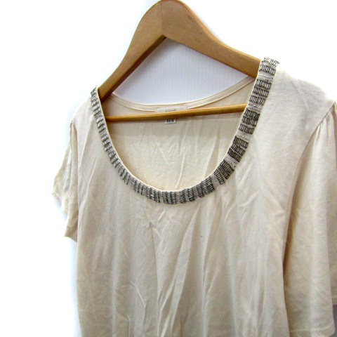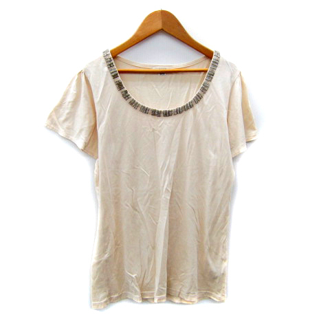 ロペ ROPE カットソー 半袖 ラウンドネック ビーズ装飾 EX-3 ライトベージュ /SY41 レディース