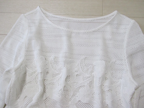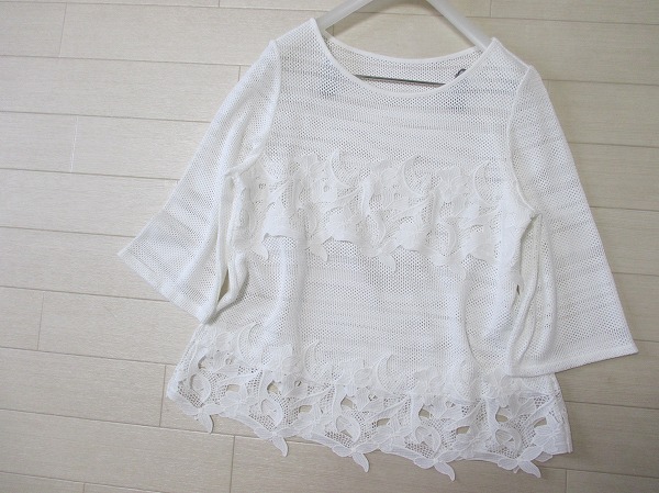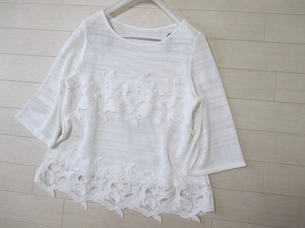 元町ゼラール*Zelal レース装飾メッシュプルオーバーカットソーニット Lサイズ