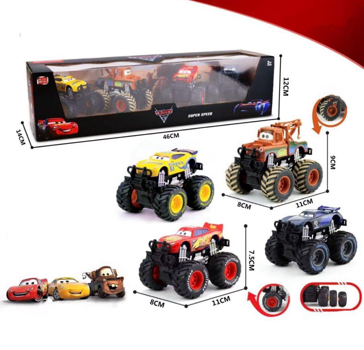 モンスタートラック 、カーズ、メーター、クルーズ、ジャクソン、など4種類の仲間たちがあります。