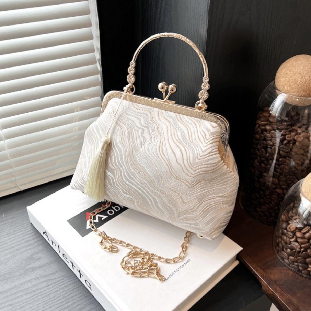 ・ドレスや着物など、様々な服装に合わせやすいパーティーバッグ