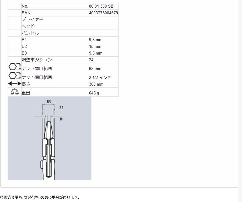 8601-300 全長300mm 重量645g 最大ナット開口68mm(2 1/2インチ)