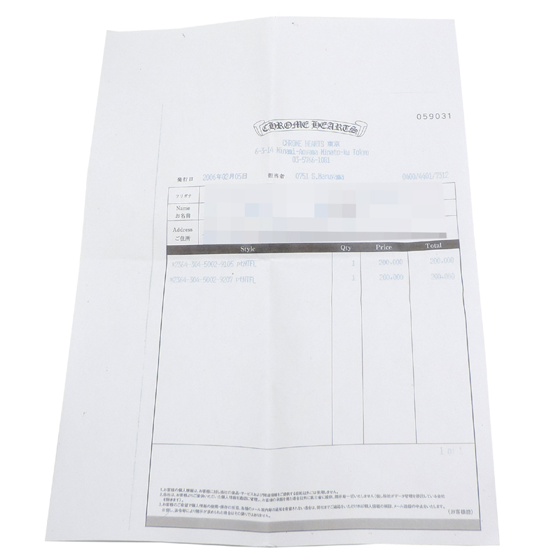 商品説明 | ※ 取扱店舗は商品タイトルをご確認下さい。 【飯能本店 042-972-3997】 【銀座ソニー通り店 03-5537-3990】 重量:8.5g 2006年2月クロムハーツ東京発行インボイスコピー ご使用されている機種、ディスプレイにより、実際の商品の色と異なって見える場合が御座います。 こちらの商品は店頭および他サイトでも販売を行っておりますので、時間差にて売り切れの際はご容赦ください。 |