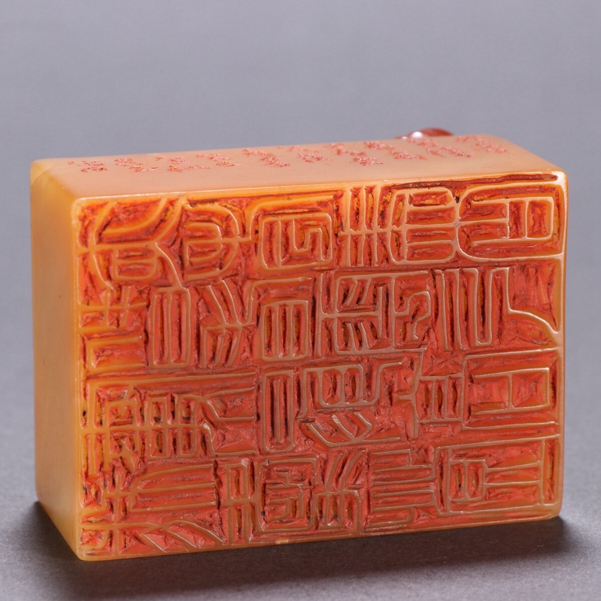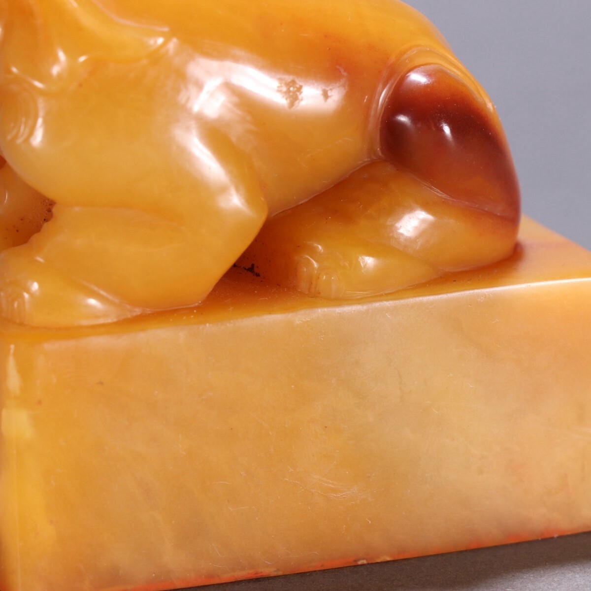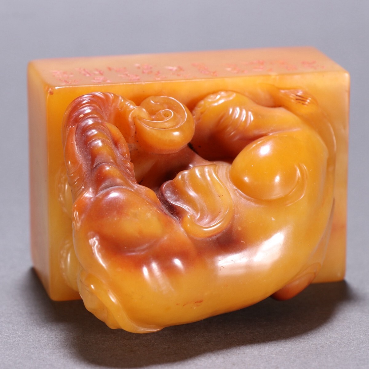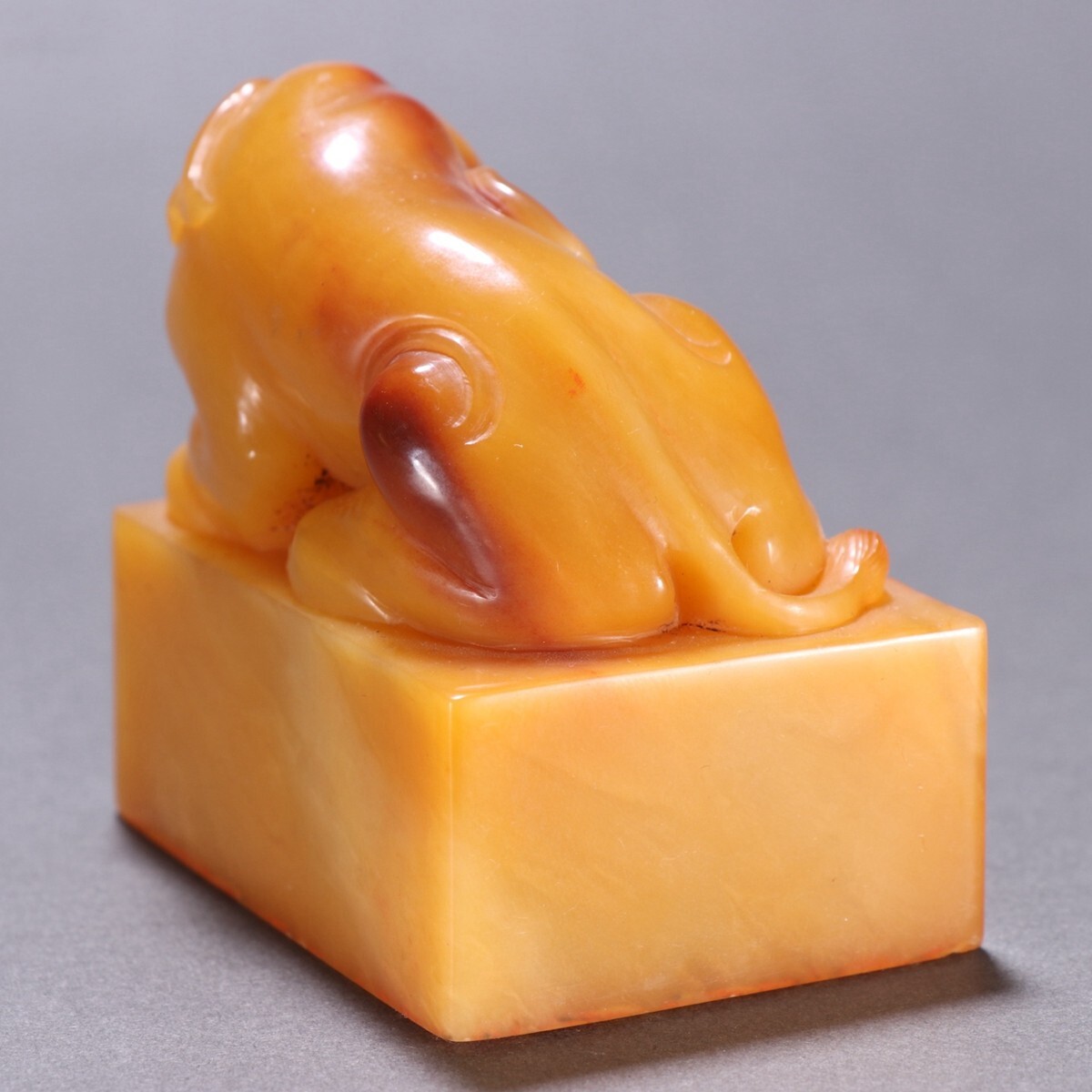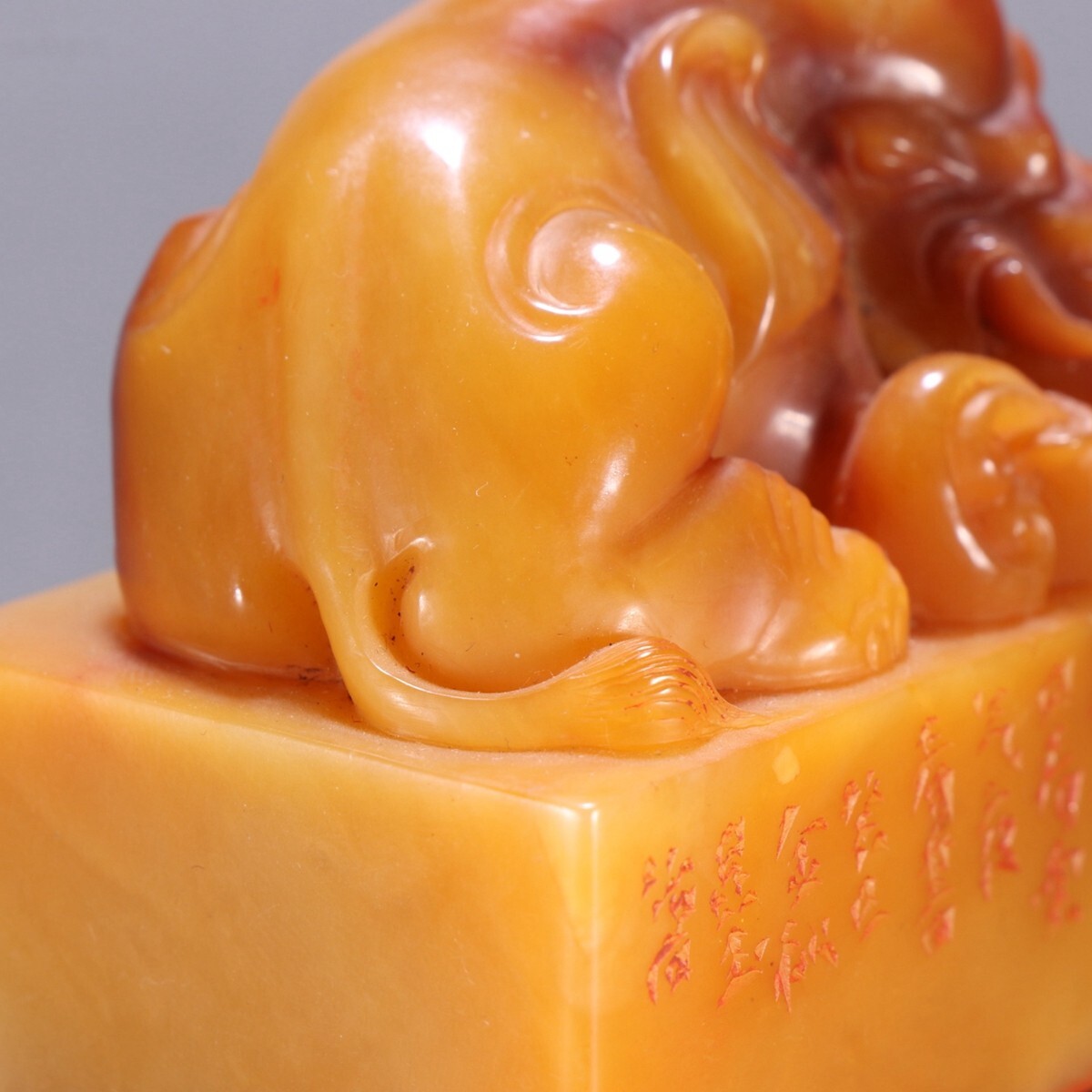 清代 昆玉作 老寿山石 田黄石彫 象鈕印章【仁】極細工 手彫り 中国古賞物 古美術 蔵出