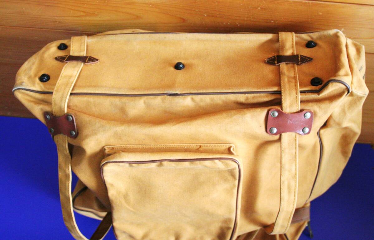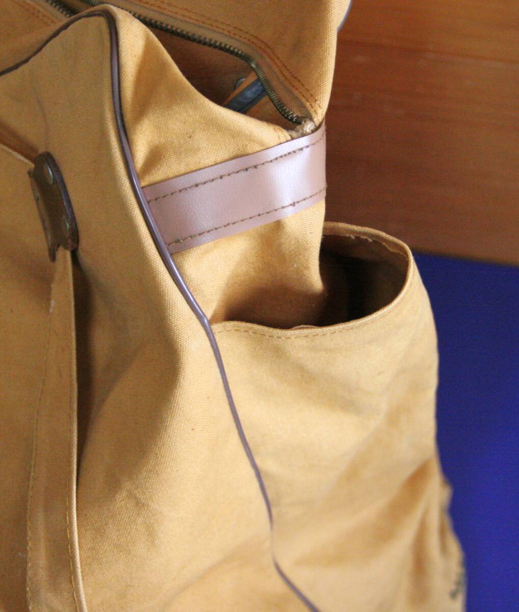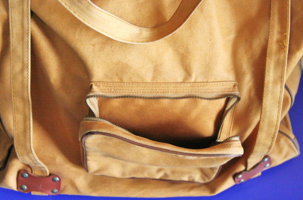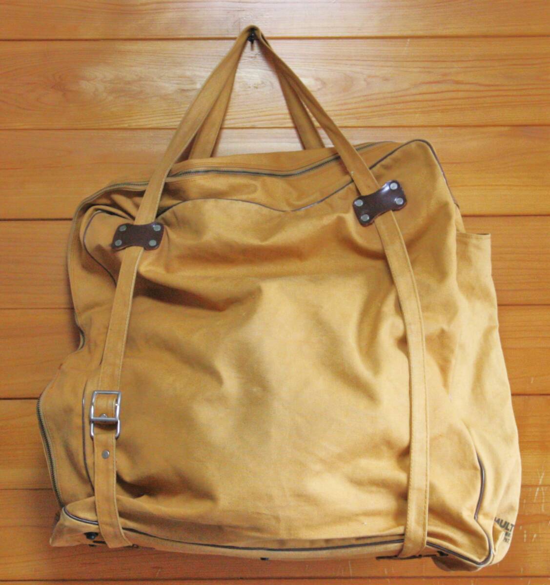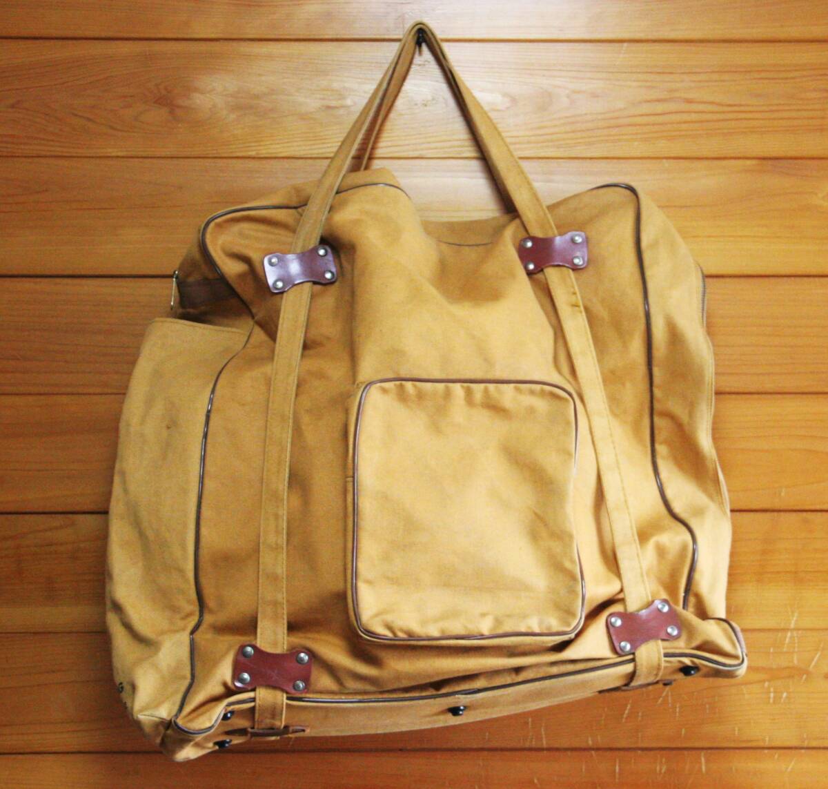 備考:画材メーカーのアートバッグの為、本来は画材等を収納する為の大型トートバッグかと思いますが、チャックが縦や横にもガバッと開き出し入れしやすく、丈夫な帆布でポールやペグ入れのようなサイドポケットがあり、簡易的なリュックにもなるときたら、まるでアウトドア用のような仕様でしょうか?
