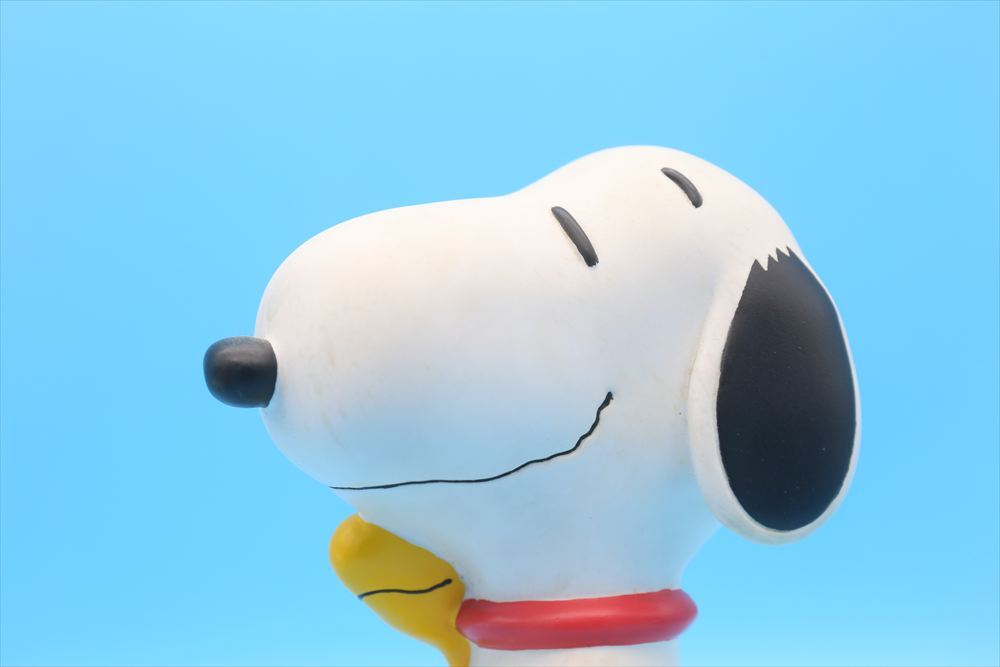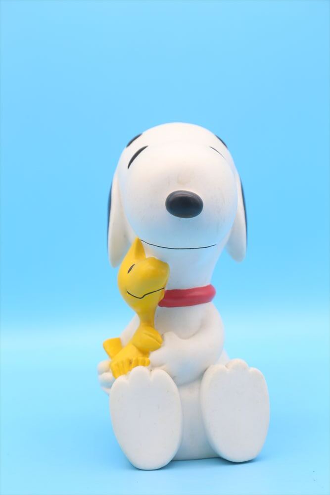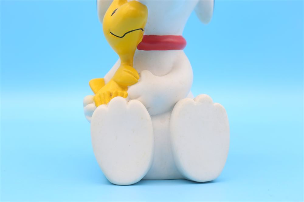 Applause社製の、スヌーピー&ウッドストックの貯金箱です。 ちょこんとお座りしたスヌーピーが、大好きな親友ウッドストックをやさしく抱きしめる姿がとってもキュート!