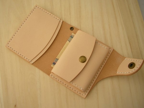 レザーウォレットミニ 小銭入れ◆ヌメ革 天然皮革◆ハンドメイド 手縫い 革財布