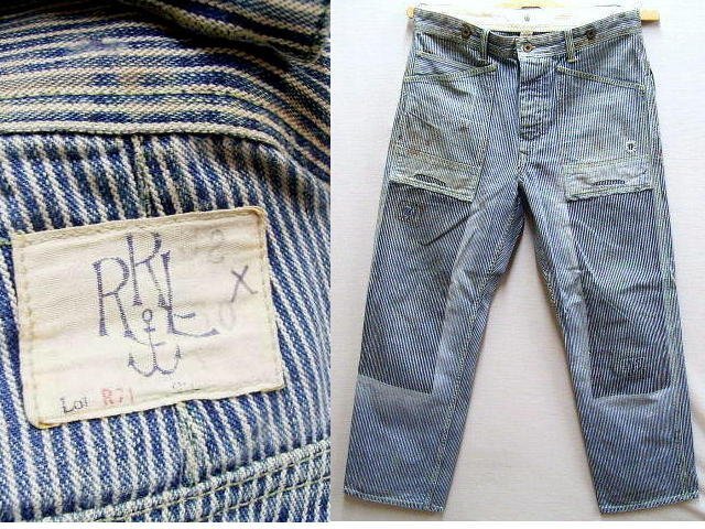 ◇即決[W32L30]RRL Y2K マリン ステンシル ヒッコリー ストライプ ダブルニー解除 ARCHIVE アーカイブ USA製 アメリカ デニム パンツ■3173