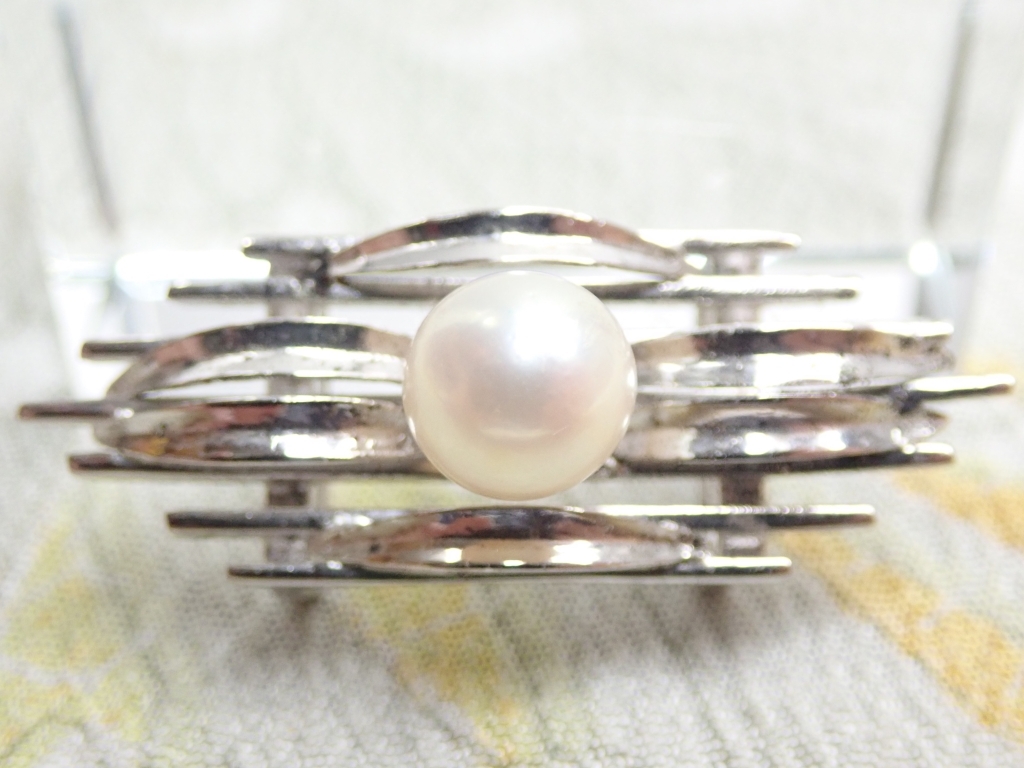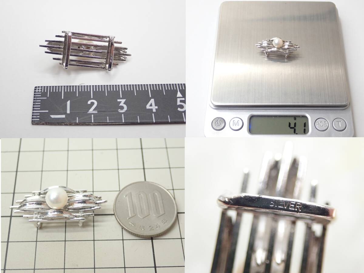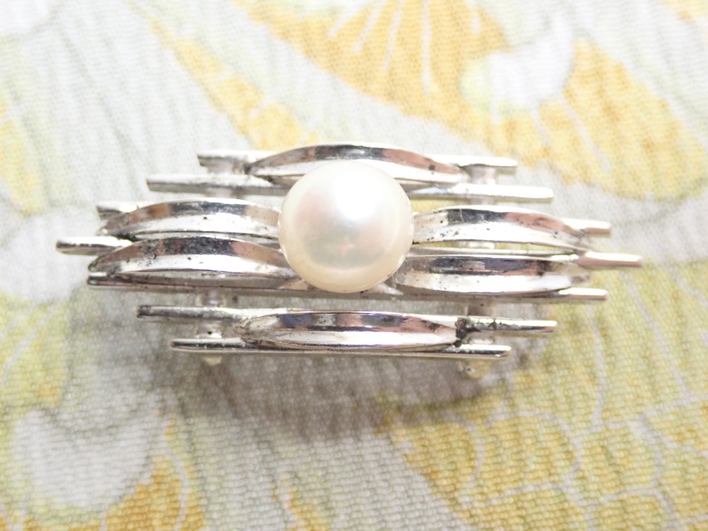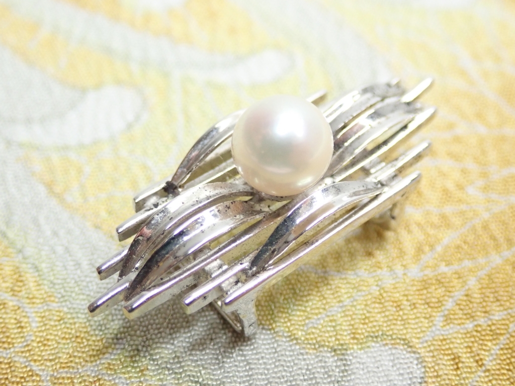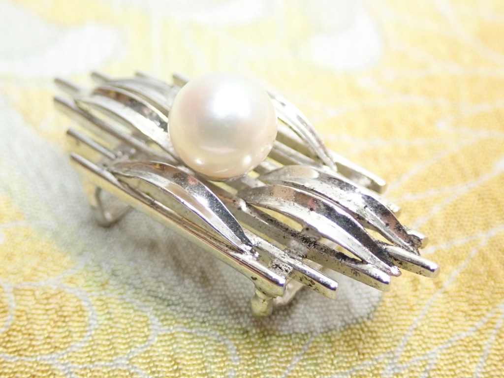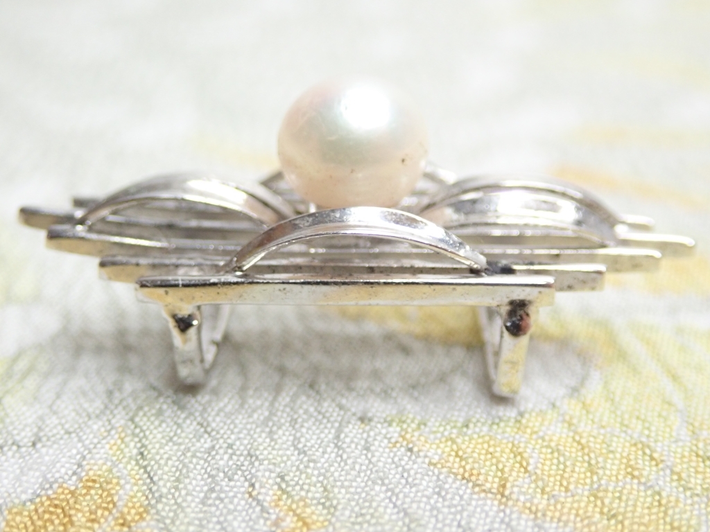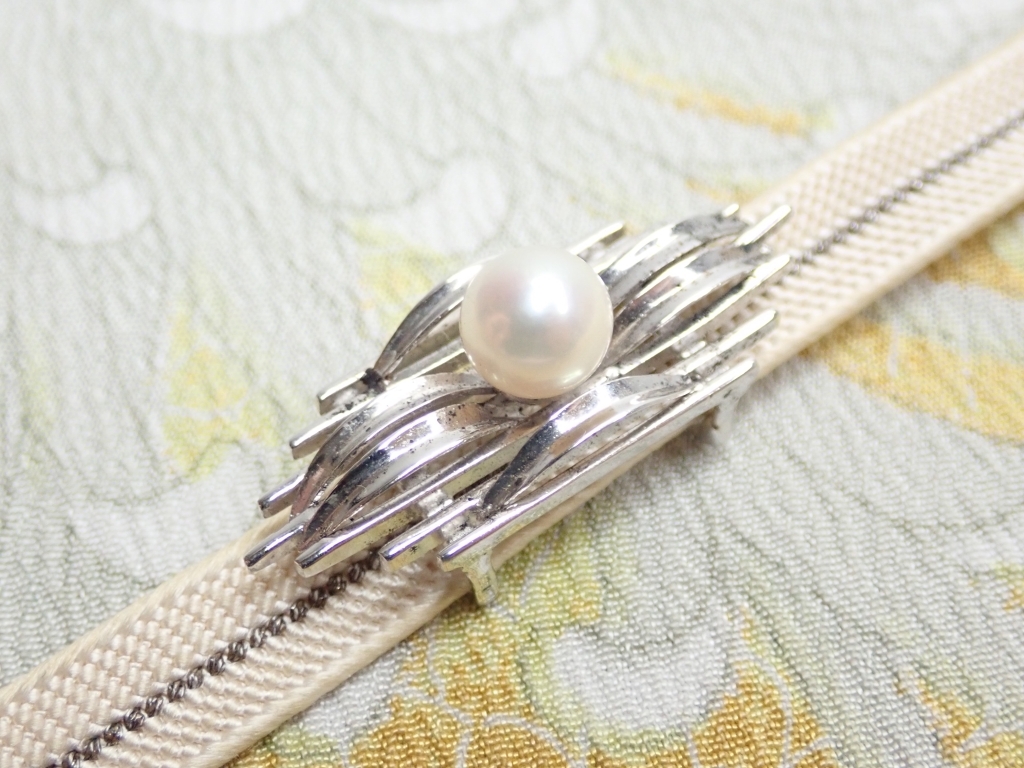 B414 帯留め 本真珠 パール 7mm玉 SILVER 小さめサイズ /和装小物/着物 Japanese Kimono Jewelry