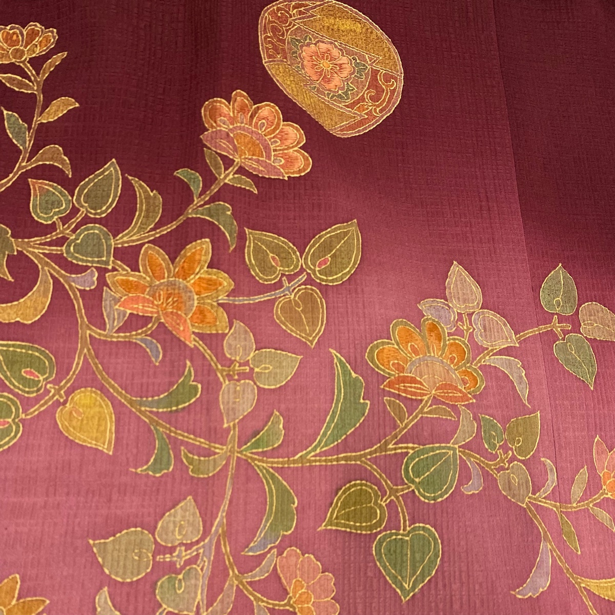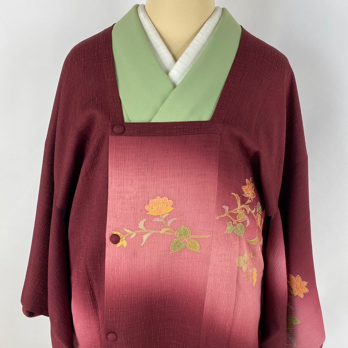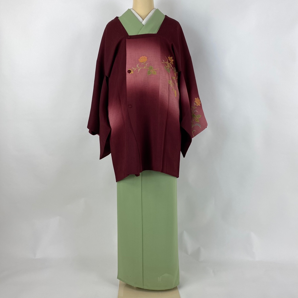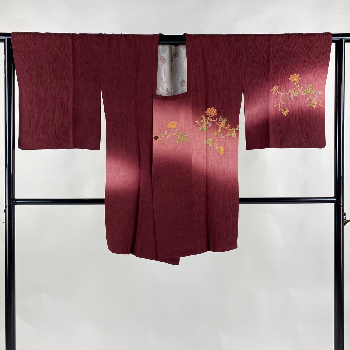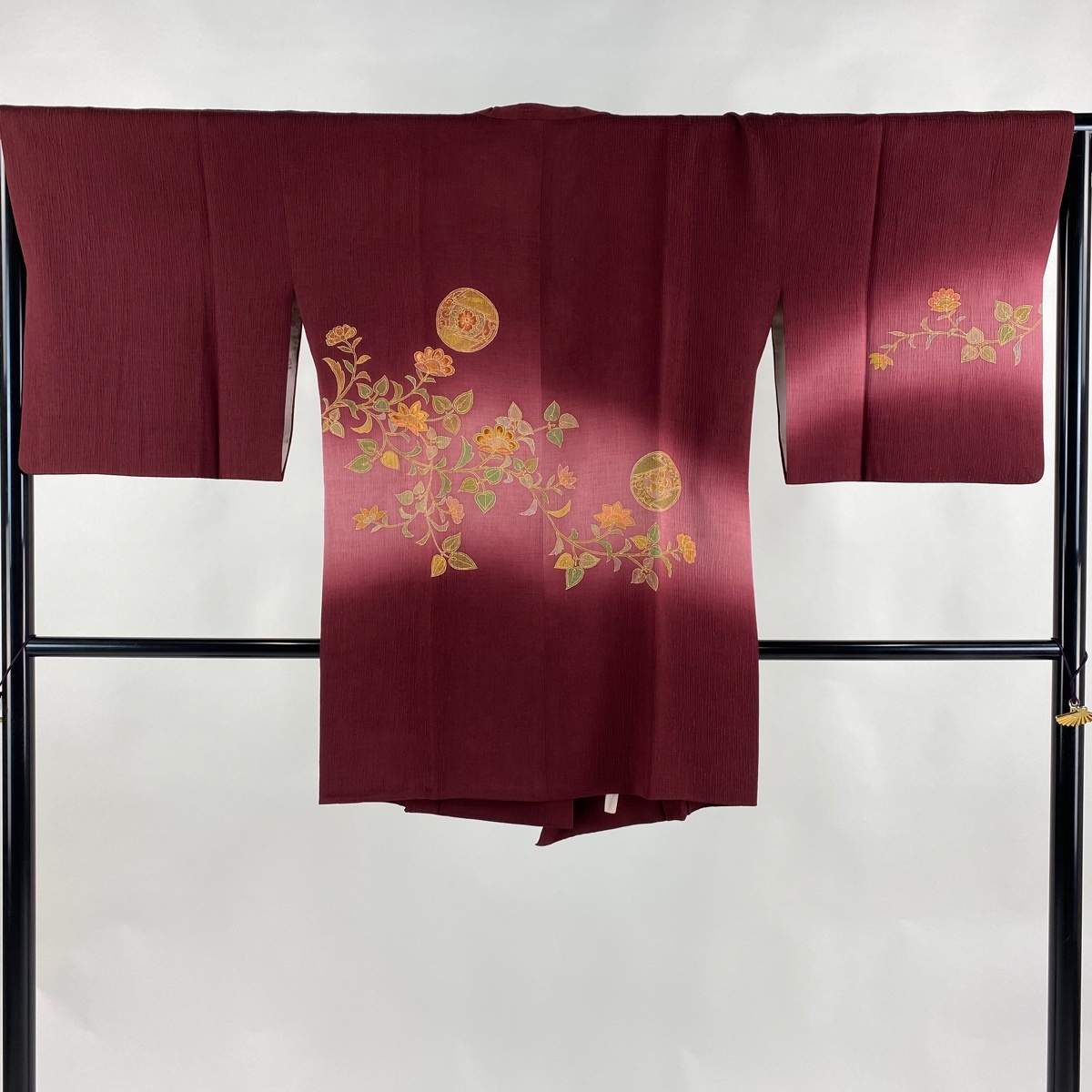 | 道行 秀品 和装コート 草花 鞠 金彩 小豆色 身丈87 裄丈66 M 正絹 【中古】 |
