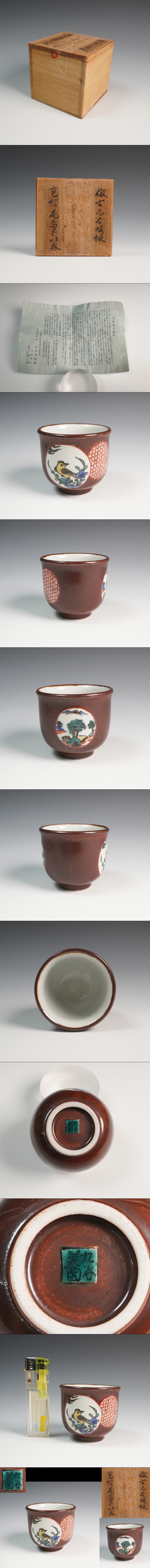 | 加州山代窯 九谷美陶園 寺前晴山 作 倣古九谷吸坂色絵花鳥ぐいのみ 用心箱 酒器 保証品 | ||||