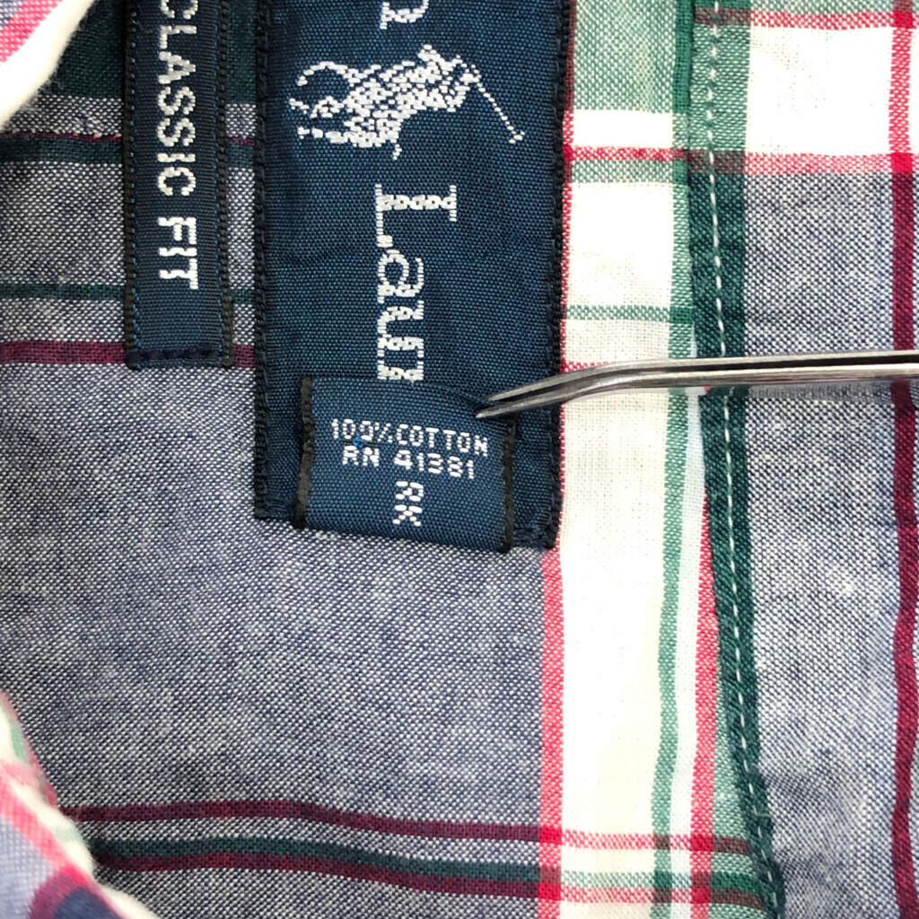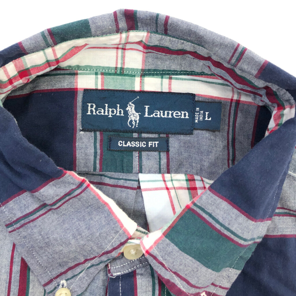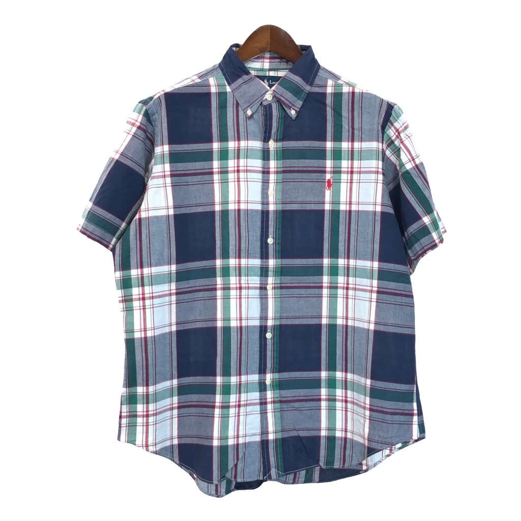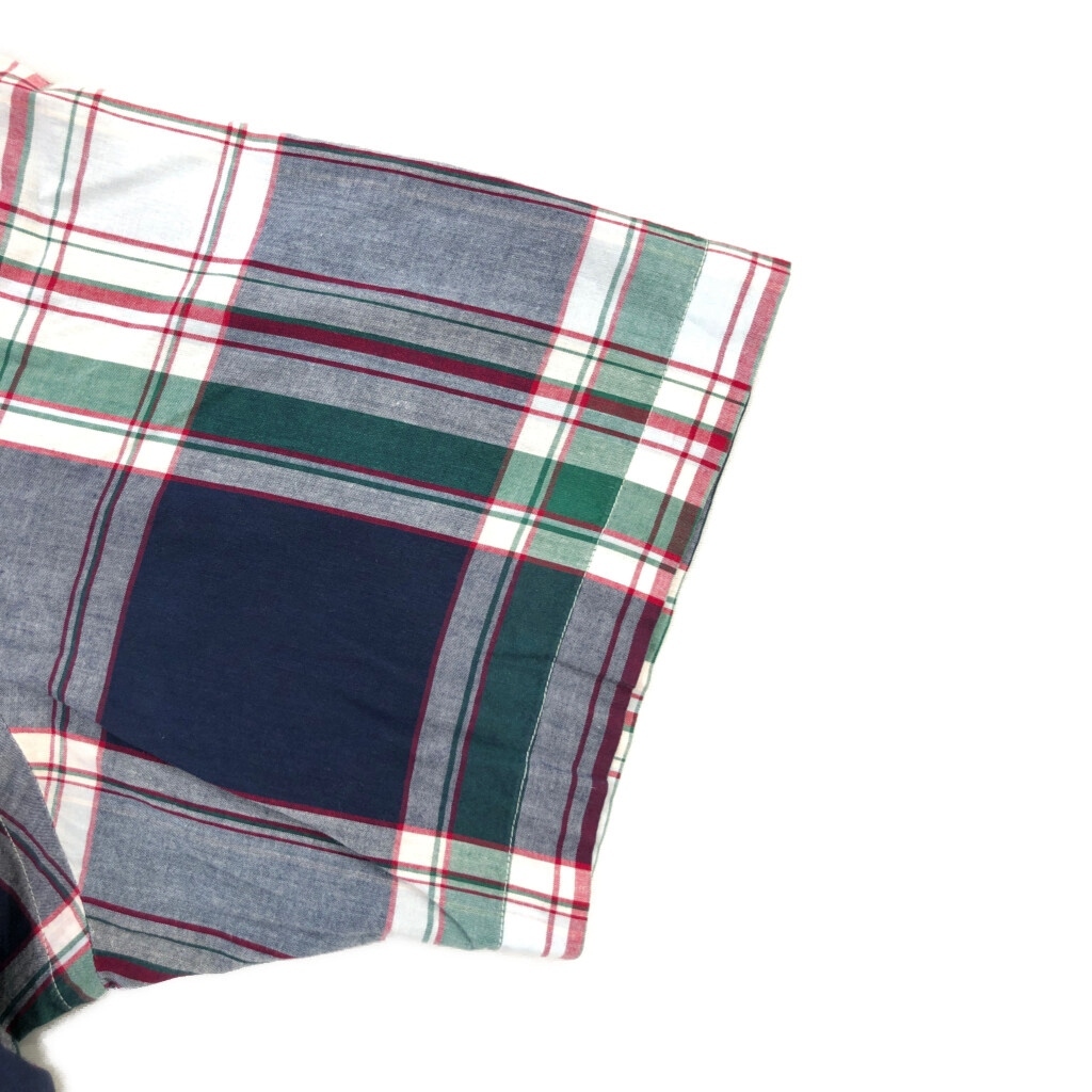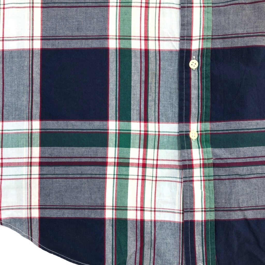 | [商品管理番号] U2792 [ブランド] RALPH LAUREN/ラルフローレン [サイズ] L [実寸サイズ] 肩幅:約50cm 着丈:約79cm 身幅:約68cm 袖丈:約26cm [主な素材] 表地 : コットン [色] マルチカラー [仕様] ボタンダウン チェック [状態] 汚れ:袖、胸、腹部 | |||