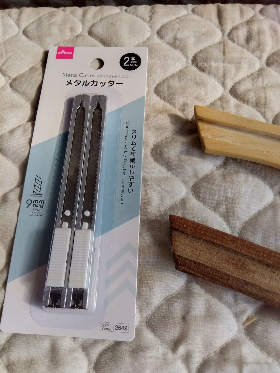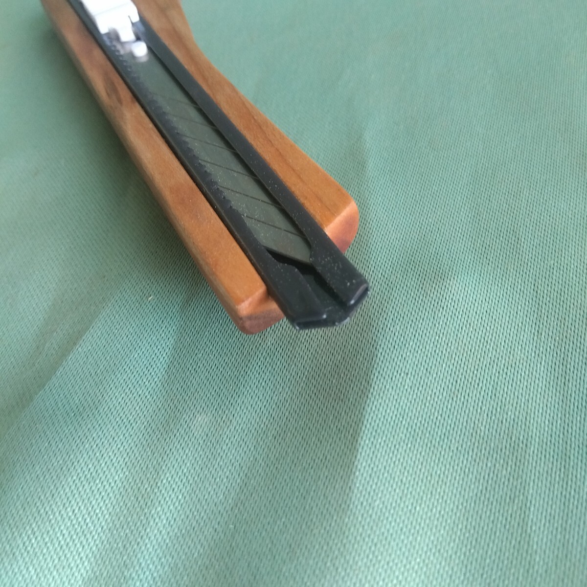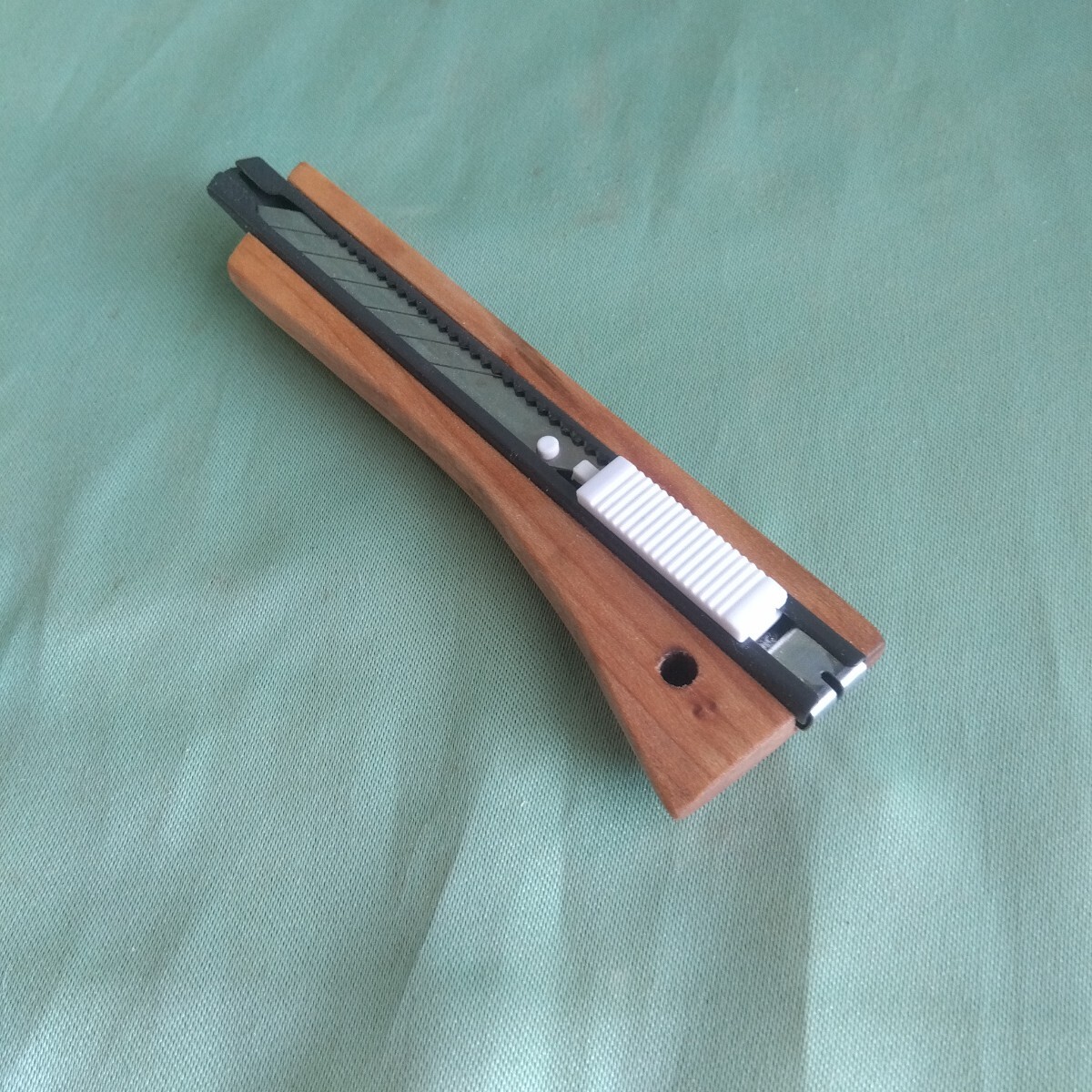 100均のカッターナイフに手造り木工品でケース合体した品物です。楢(ナラ、なら)の1本に成ります。カッターナイフ本体は接着して有り、替刃交換は画像5枚目の様に金具をスライスすれば簡単に交換出来ます。画像6枚目、7枚目は組み立て前に成ります。ハンドメイドマーケットで手造り品好きな方に良く売れてる品物です。最近は木工オイルで仕上げて有るので、滑らかで、持った感じも良いと好評です。現物を手に取って確認してもらいたですが、画像からご理解、ご納得いただける方にお願いします。手造りですから、完璧では有りませんから、慎重にご検討下さい。また、追加で2本組や割と左手仕様の方もフリーマーケットで頼まれるので、左手用も出品し始めたので、1本のみのご購入や複数、同梱も送料同じで発送出来ますから、様子でご検討いただけたら、おまとめ対応します。発送はゆうパケットに成ります。尚、土、日、祝日はフリーマーケットやハンドメイドマーケット出店の場合、翌日の発送に成りますが、即決価格ですから、タイミングみて、ご購入いただければ、スムーズな発送出来ます。宜しくお願いします。ありがとうございます。