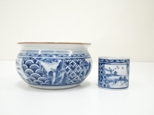 ys7372847; 染付祥瑞写山水文建水・蓋置セット【道】