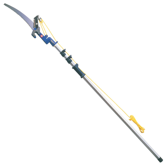 ・ヘッドの角度を変えられる。 業界初の首振りヘッドで、どんな向きの枝でもゆがみなく、ストレートにカットでき、塀ごしの枝、繁みの中の枝も楽にカットできます。 ・カットした枝を放さない。 カットした枝はそのまま刃先のキャッチ金具でホールド。果物採取等も安心して行えます。※保持できる力は約1kgfです。 ・25mmまでの枝をラクラクカット。 刃はサビやヤニがつきにくい「フッ素樹脂加工」製。切れ味に優れ、ダブル滑車使用で25mmまでの太い枝がラクにシャープにカットできます。 ・高級ノコギリ付き。 ノコギリ付きで、高い所の太い枝でもカットできます。 ・軽く、グリップ上下でラクラク操作。 握りを上下するだけで、簡単にカットできる「スライドグリップ」タイプ。しかも軽量アルミパイプ+グラスファイバーヘッドですから、女性の方でもラクに作業していただけます。 ・最長3.5mまで伸ばせる。 枝の高さに合わせて、長さが3.5mまで伸ばせ、細かな作業もラクにできます。 ・便利でラクなサポートヘッドスタイル。 ヘッドのくの字形で枝切り操作がラクになりました。 |
