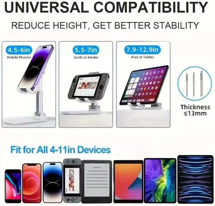 【ブラック】スマホ・タブレットスタンド 折りたたみ式 角度&高さ調整可能