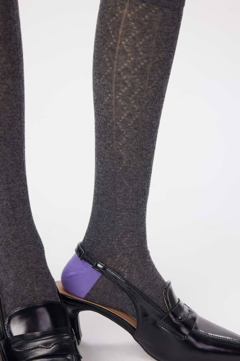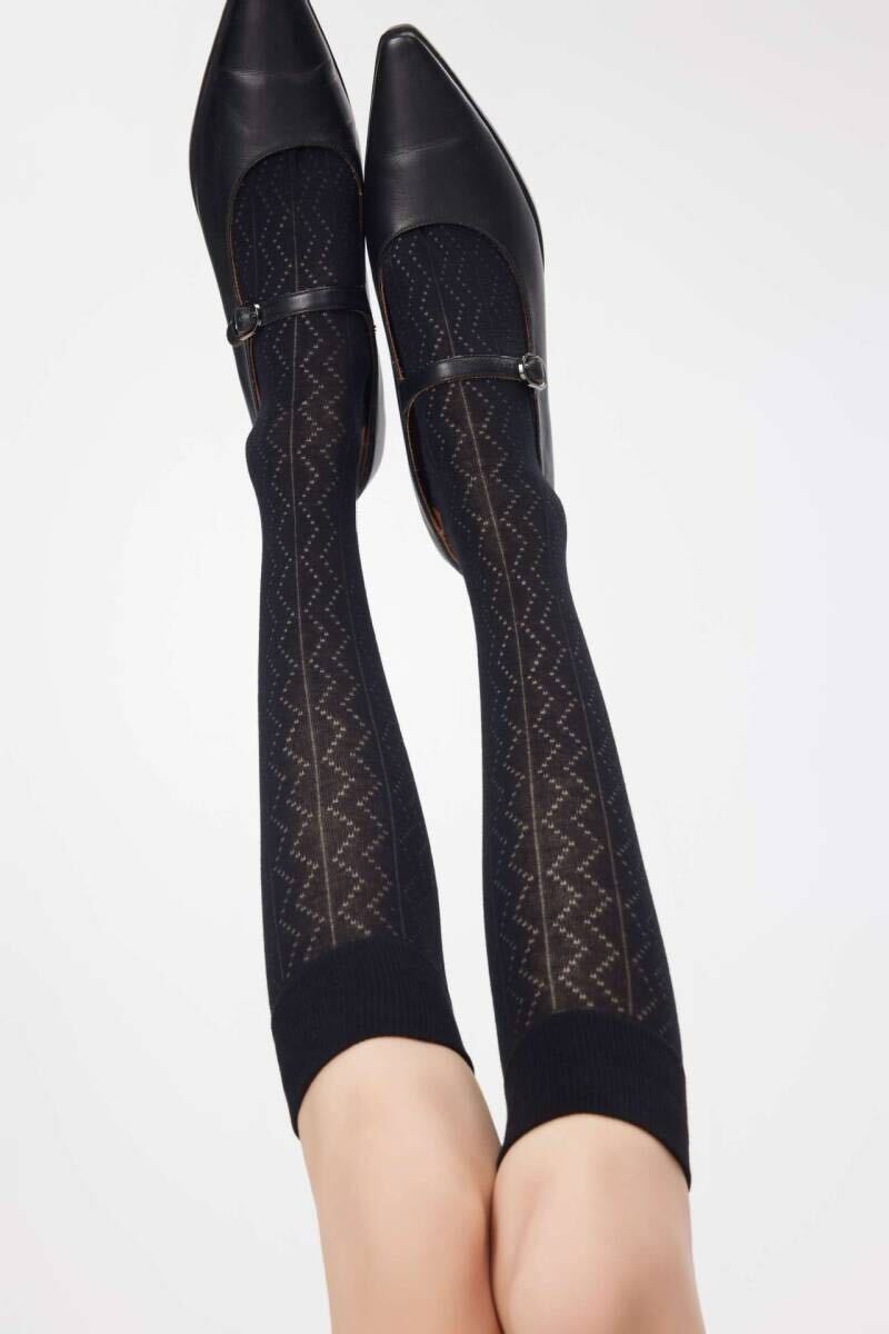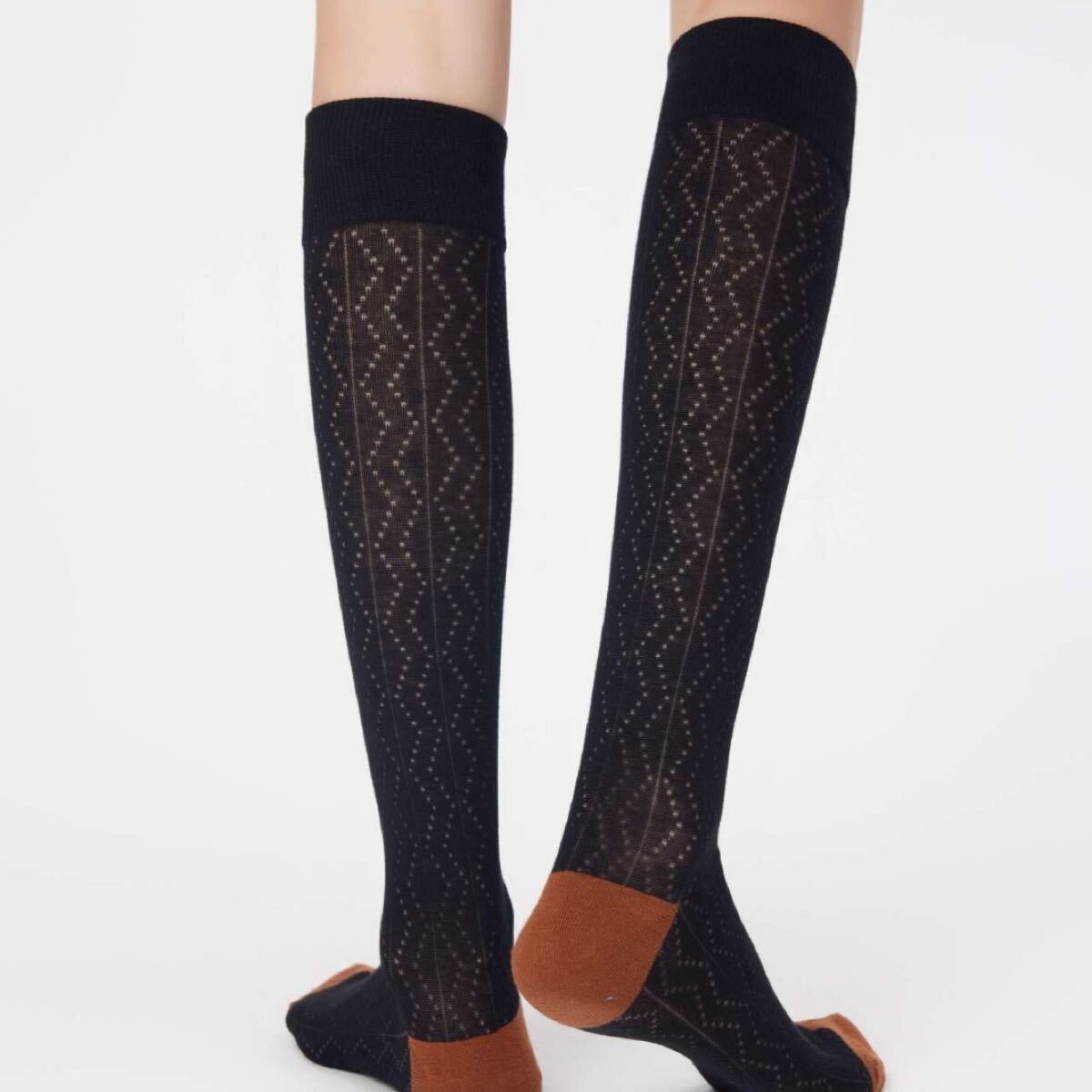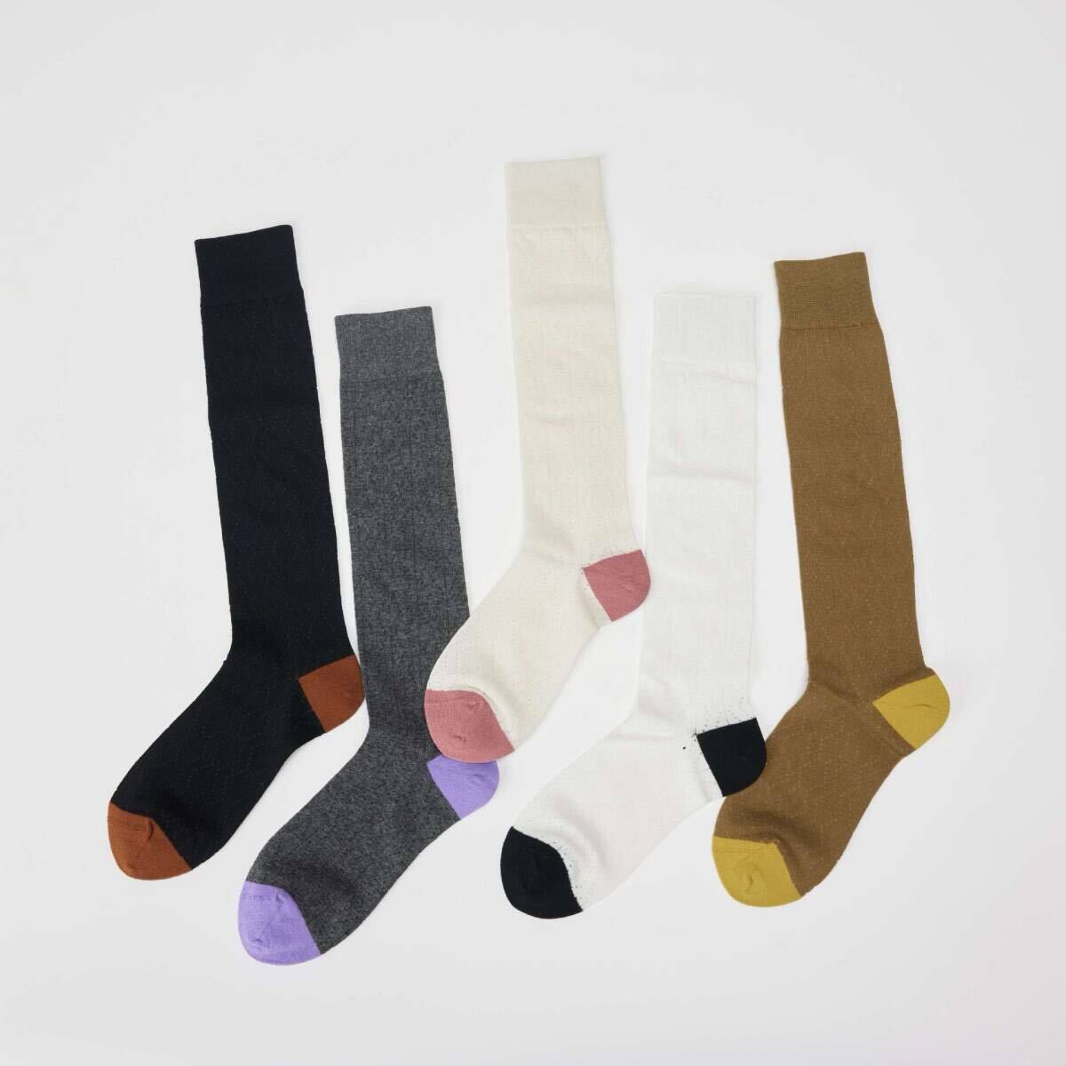 大人っぽくさりげない柄に程よい透け感が上品なハイソックスです。