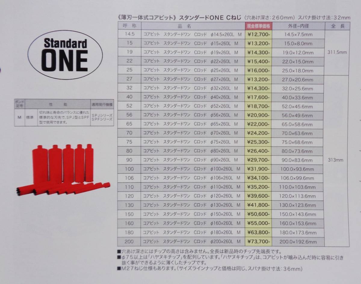 標準コアビット呼径 : 14.5~120mm