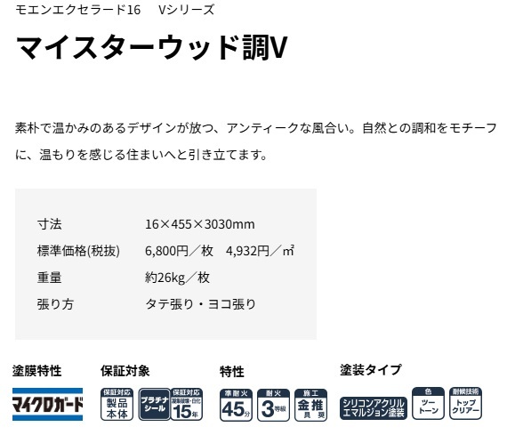 | サイズ | 16×455×3030mm 約26kg/枚 |