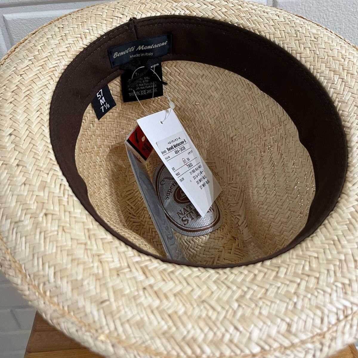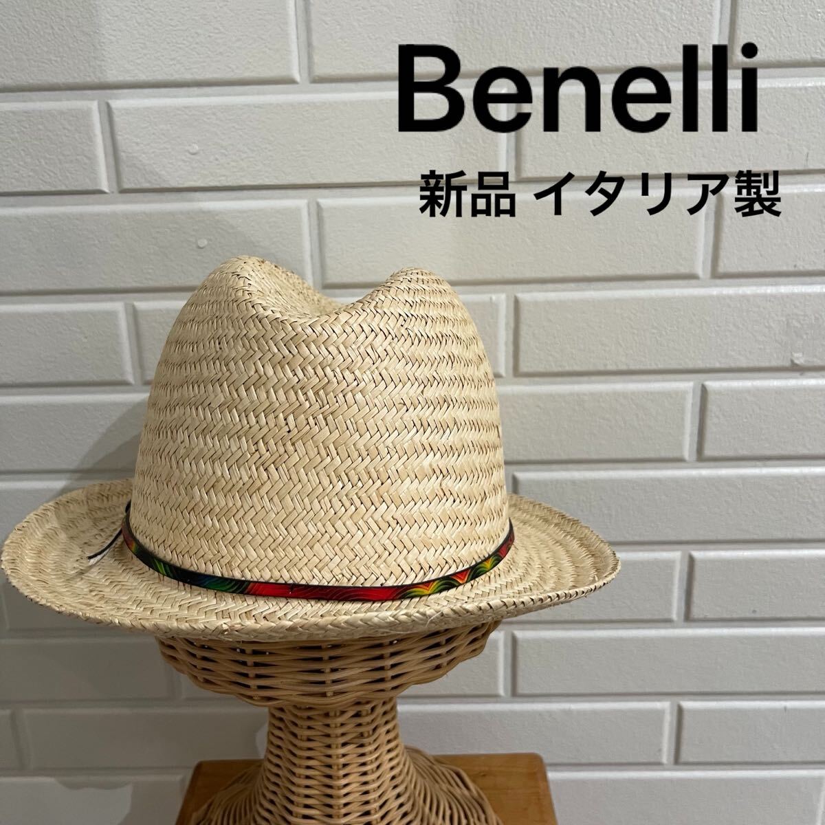 新品 イタリア製 Benelli ベネリ ストローハット 中折れハット 麦わら帽子 レザー レインボー ナチュラル HAT サイズ57 玉mc3790