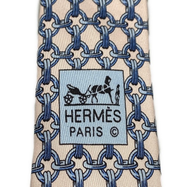 エルメス HERMES - ピンク×ライトブルー×ブルー メンズ 鎖柄 ネクタイ