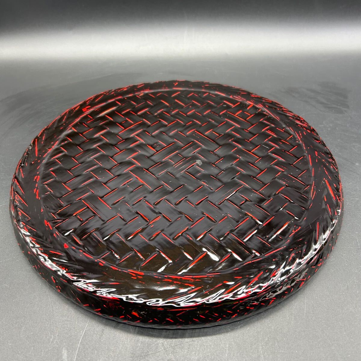 籃胎漆器 らんたい漆器 丸盆 盆 お盆 菓子盆 竹製 漆塗り 伝統工芸 漆器 ヒ1